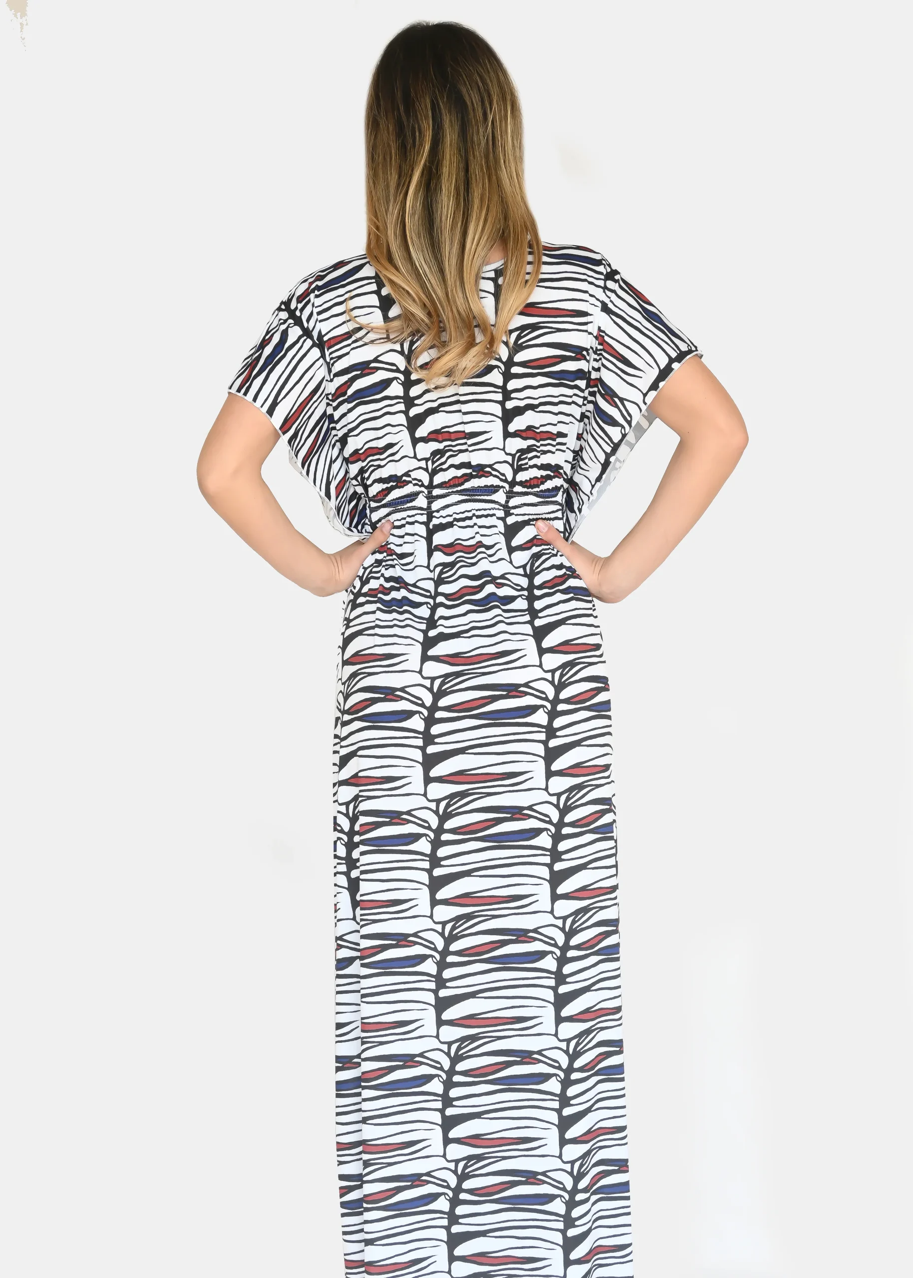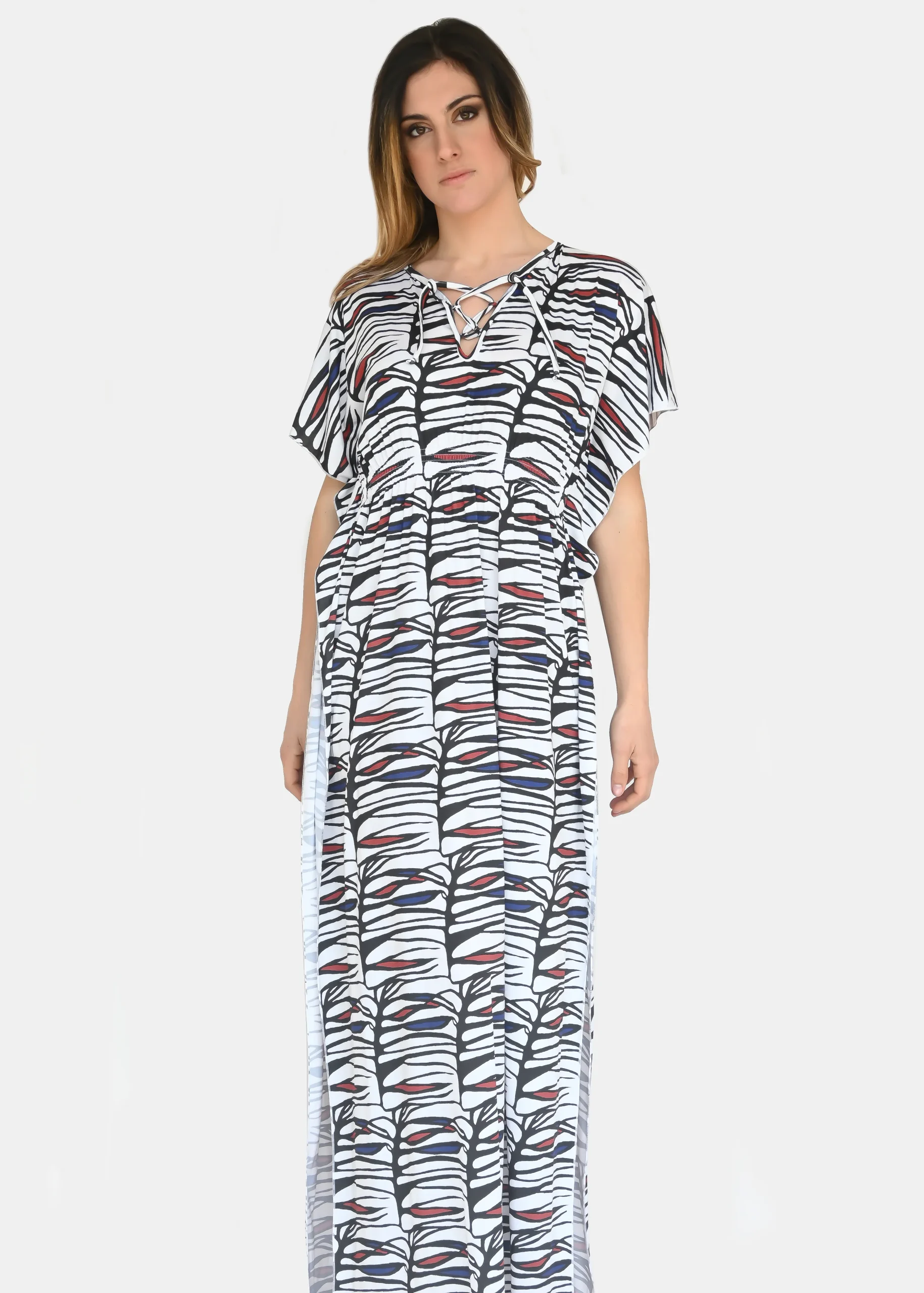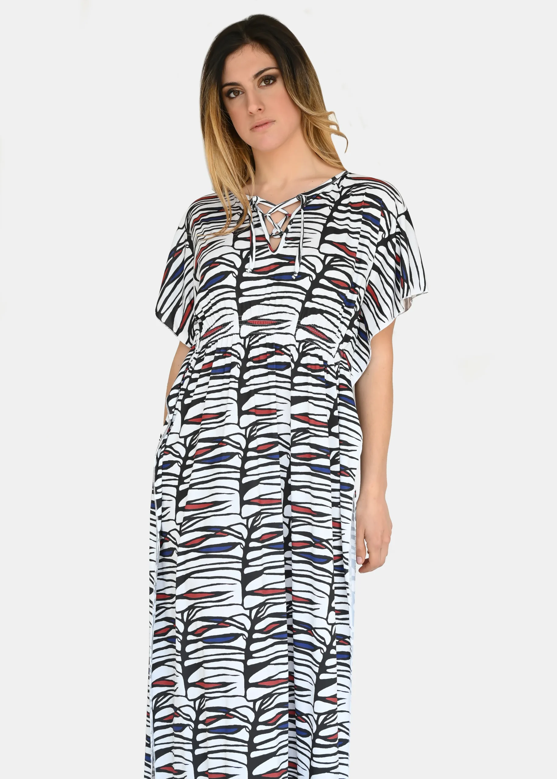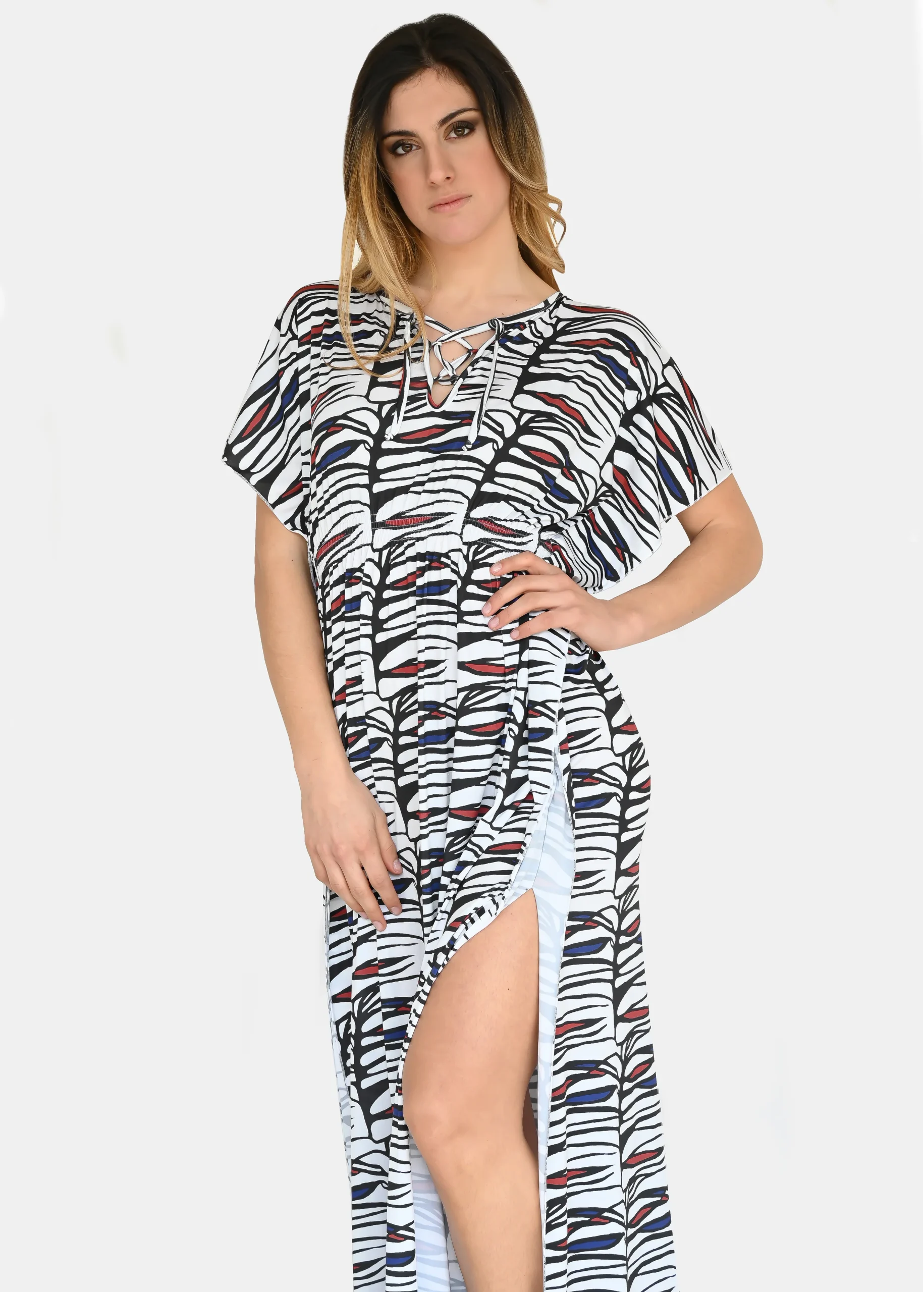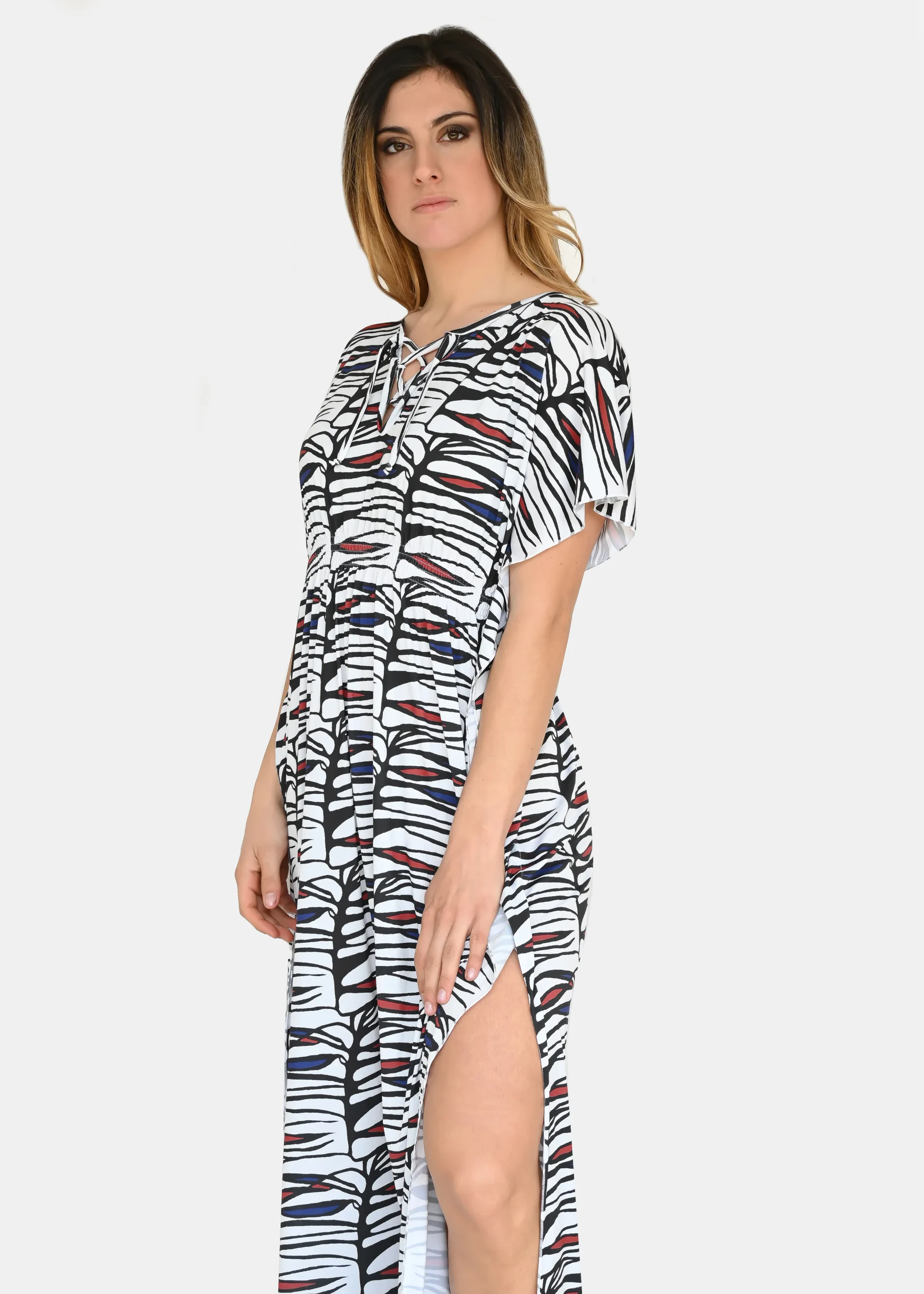 jersey “Zebra Rossa”, riporta uno dei tanti dipinti di Millyblu. Confortevole, fresco e morbido. Ha un profondo spacco laterale con incrocio sulla scollatura ed elastico in vita. Comodo per le lunghe giornate estive come caftano elegante, copricostume o fuori acqua. Taglia unica.