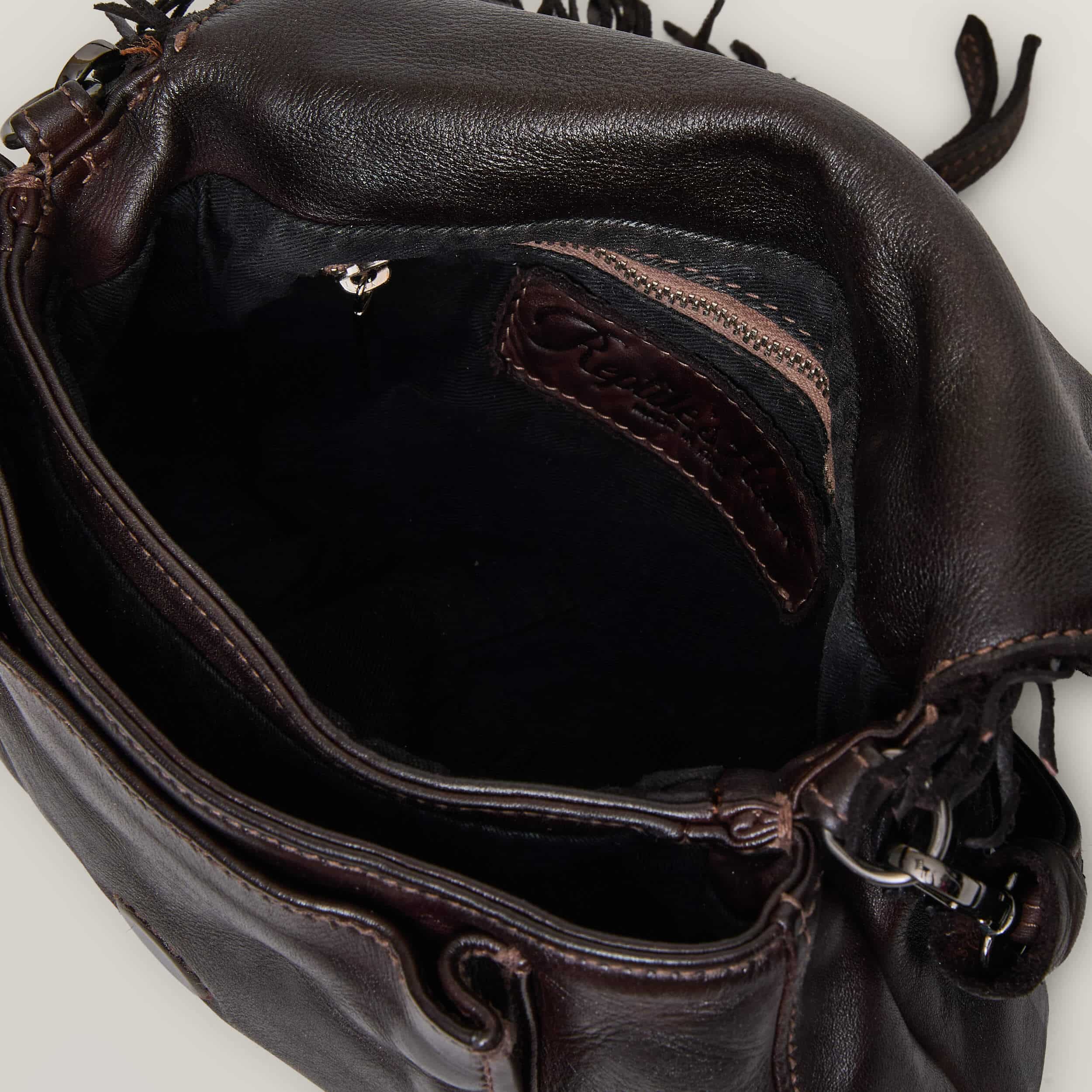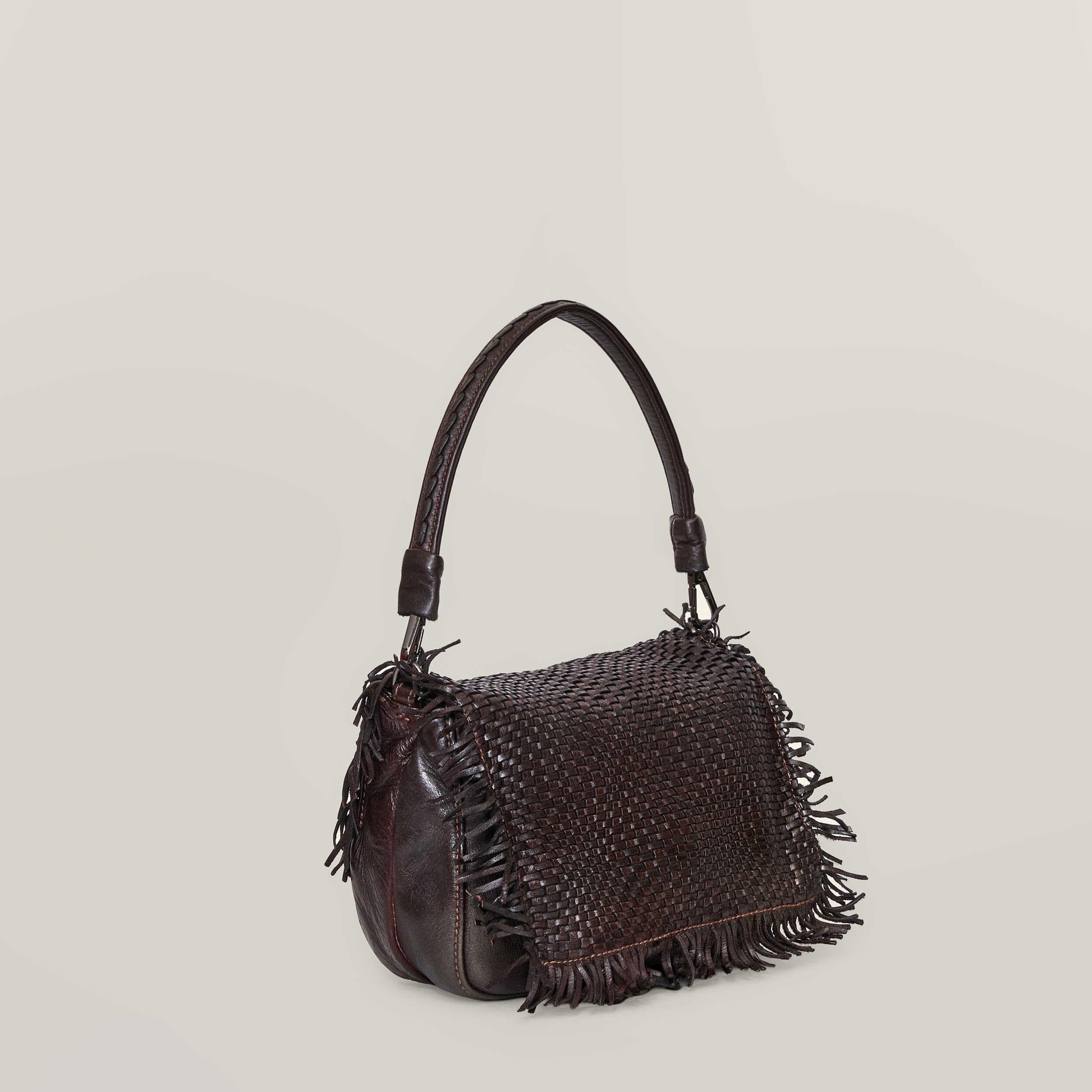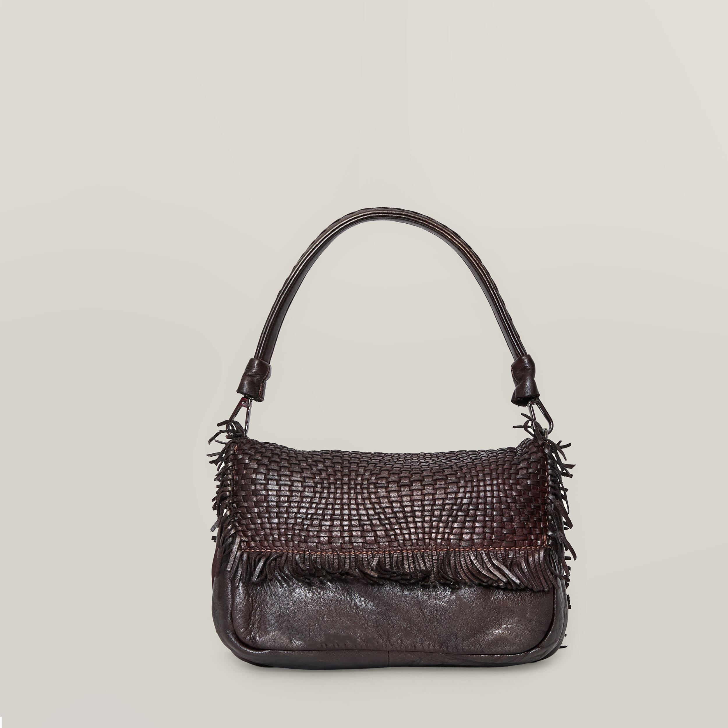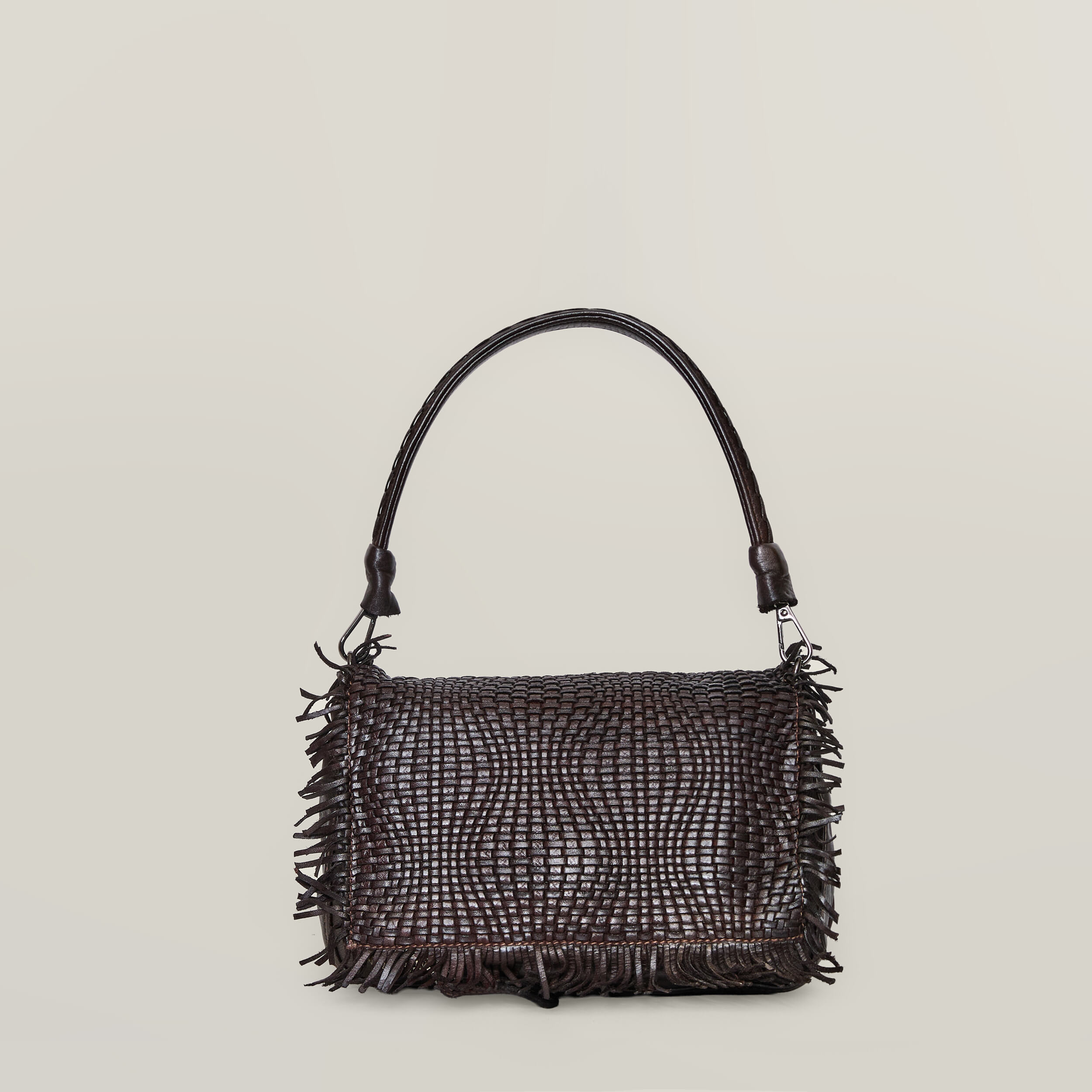 Caratteristiche prodotto Dimensioni: Altezza 16 cm × Larghezza 23 cm × Profondità 9 cm Materiale: 100% pelle di vitello Lavorazione: Patta in pelle intrecciata a mano Chiusura: bottone a calamita Manico: In pelle con dettagli intrecciati, lungo 35 cm Tracolla: Regolabile in pelle liscia con fibbia in metallo Tasche interne: 1 Tasca con chiusura a […]