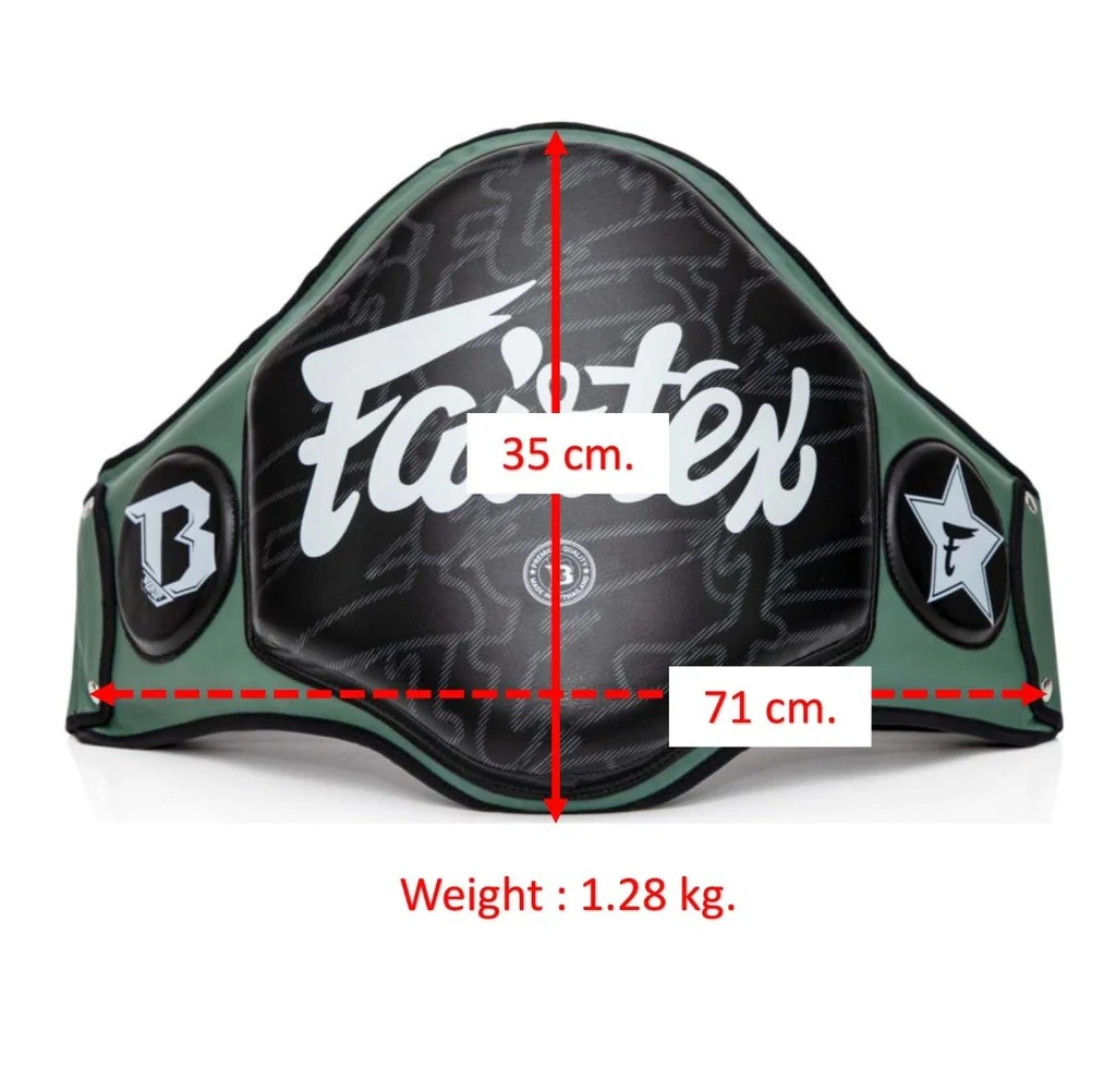 Das Fairtex Belly Pad ist ein unverzichtbares Equipment für Trainer im Muay Thai, Kickboxen, Boxen und MMA. Es schützt den gesamten Bauchbereich zuverlässig vor Schlägen, Tritten und Knietechniken und ist damit ideal für intensives Technik- und Kombinationstraining geeignet. Hergestellt in Thailand und gefertigt aus strapazierfähigem Rindsleder, überzeugt es durch exzellente Stoßdämpfung und langanhaltende Qualität.