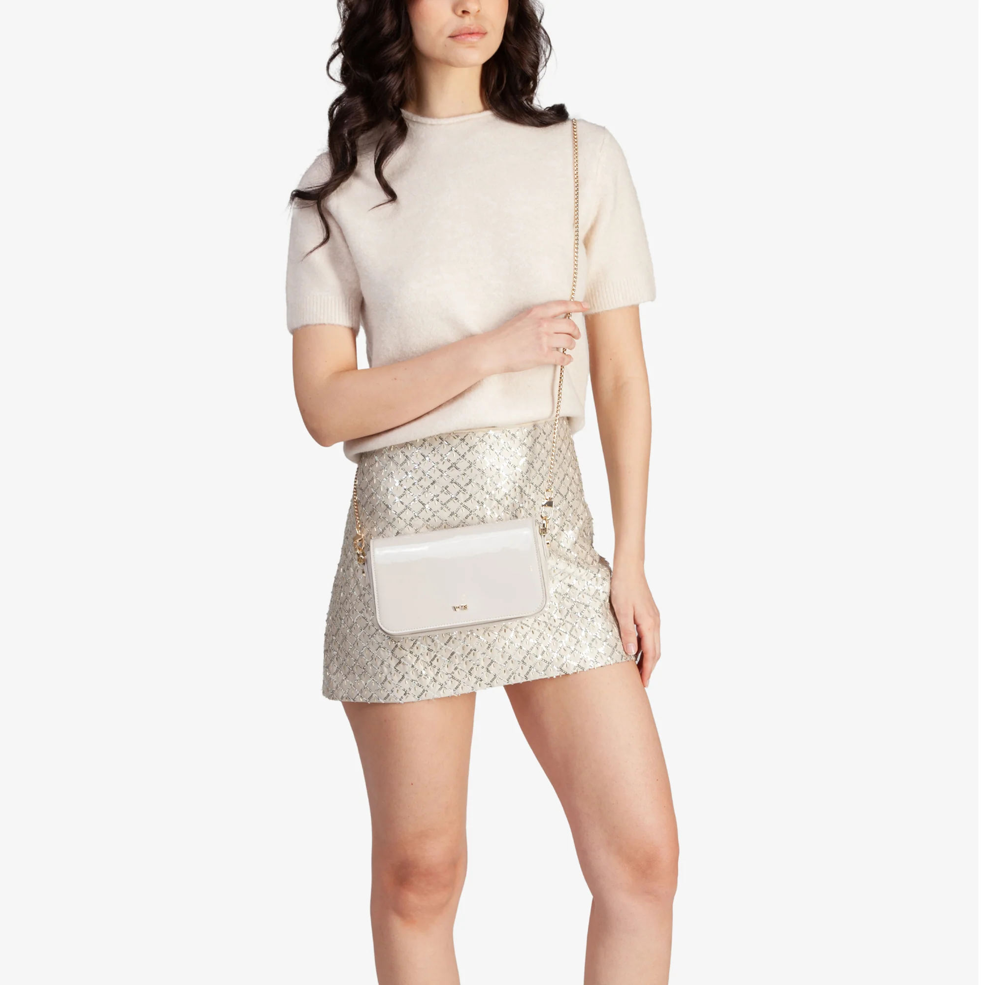 Pattina da sera con tracolla in catena personalizzata e letterine metalliche