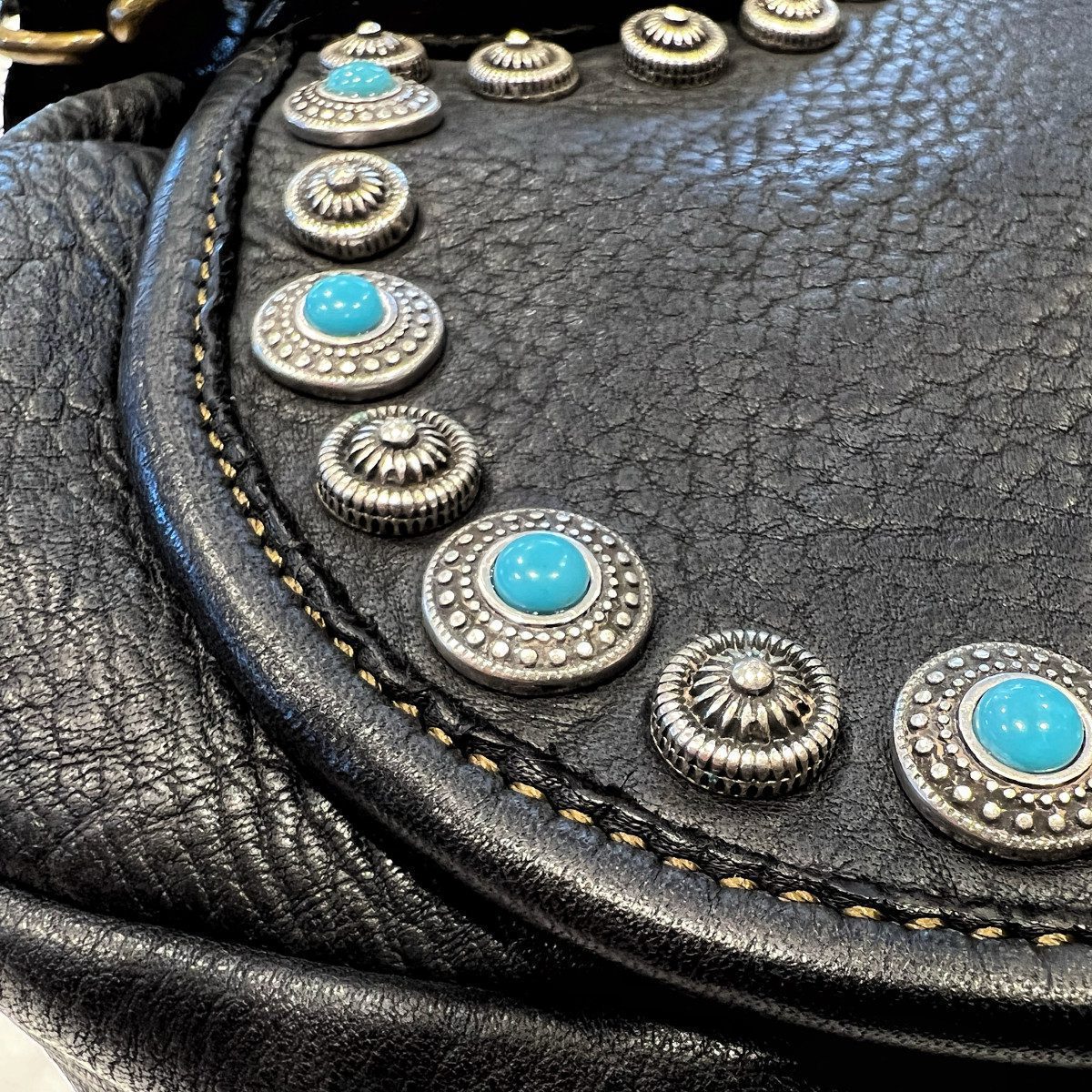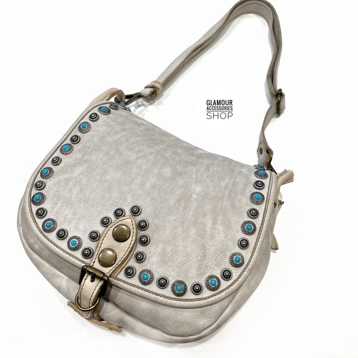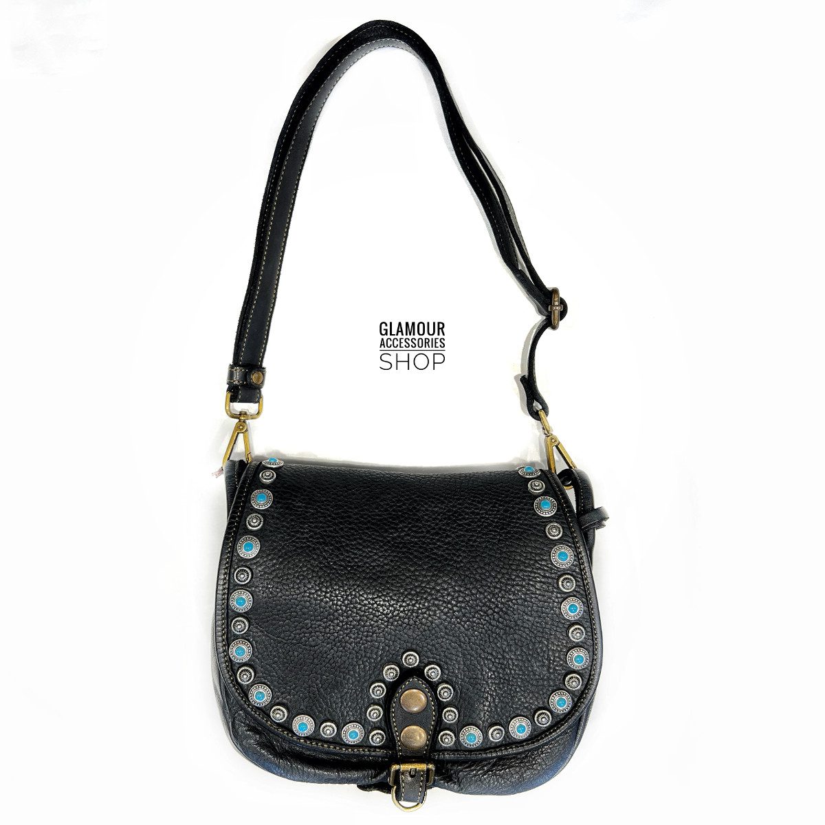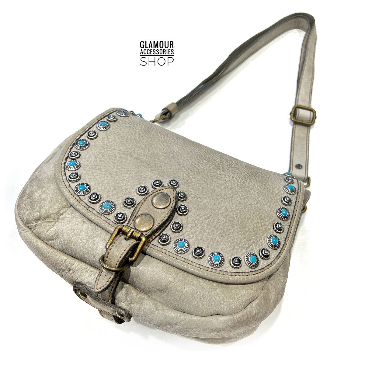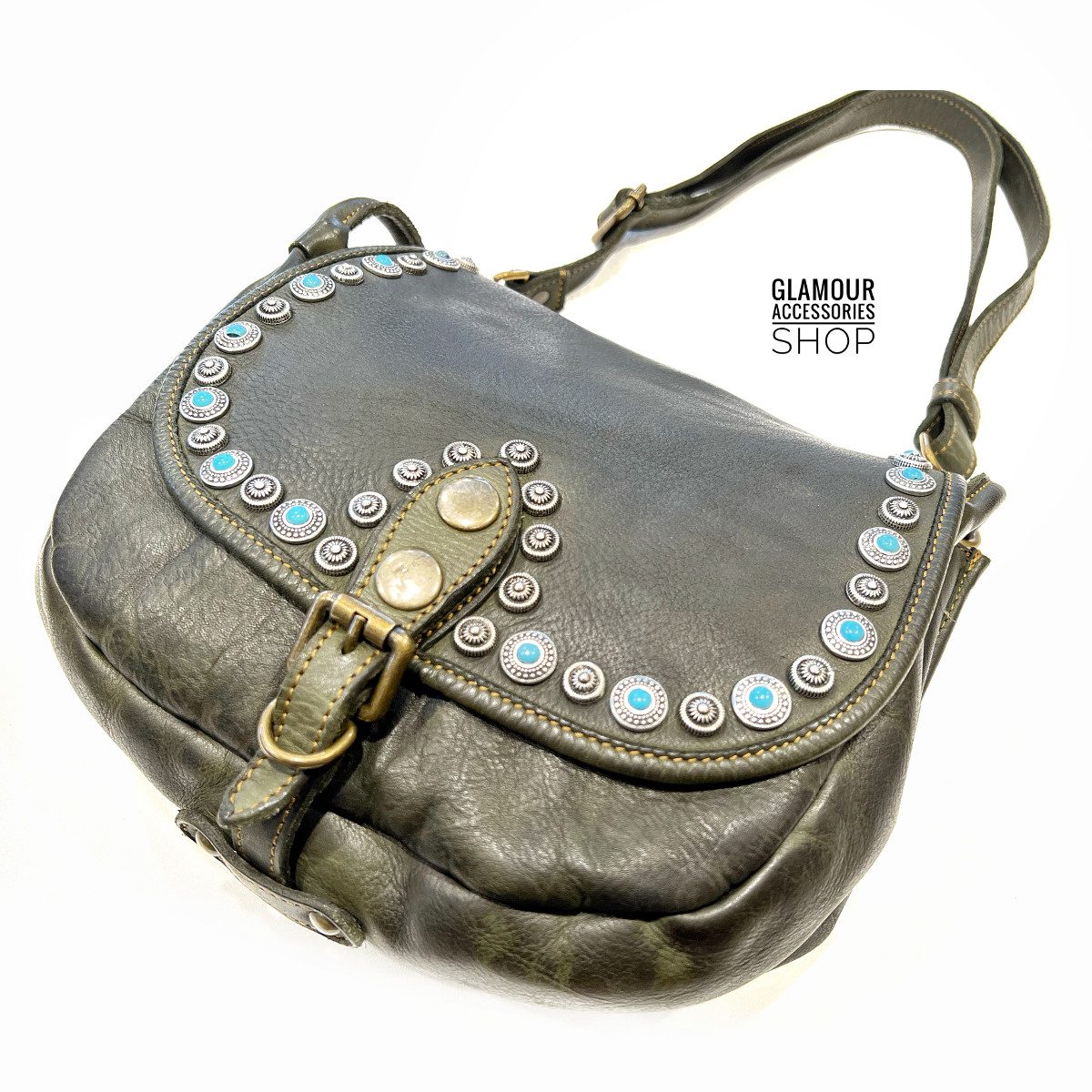 BORSA artigianale donna vera pelle patta borchiata MADE IN ITALY turchese