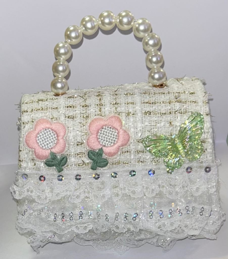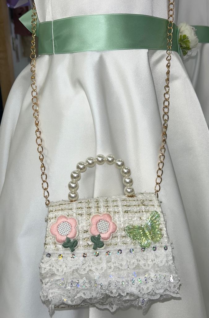 borsetta bimba con decorazioni in pizzo
