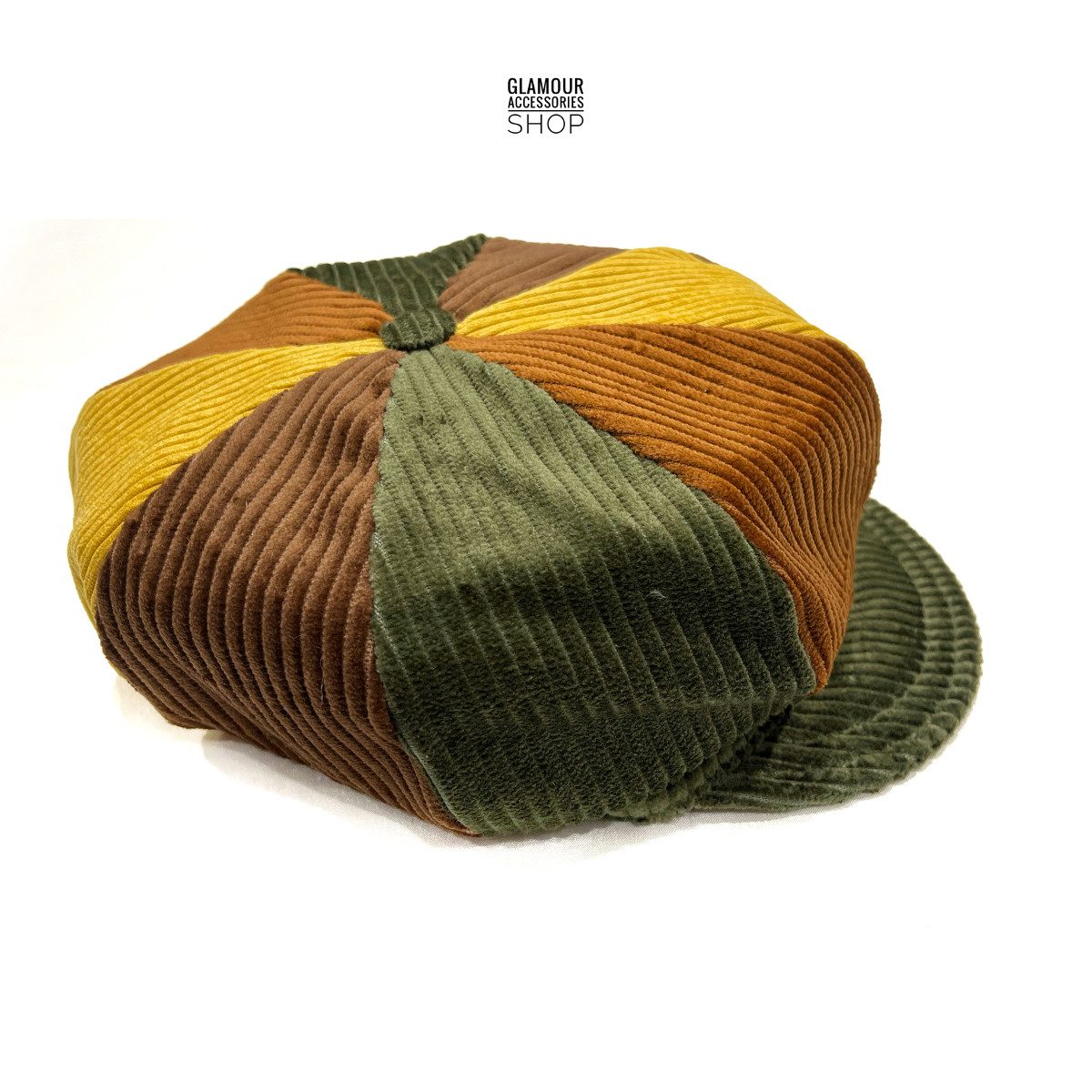 Berretto cappello velluto invernale realizzato da artigianato italiano a 8 spicchi  dallo stile retrò, MADE IN ITALY