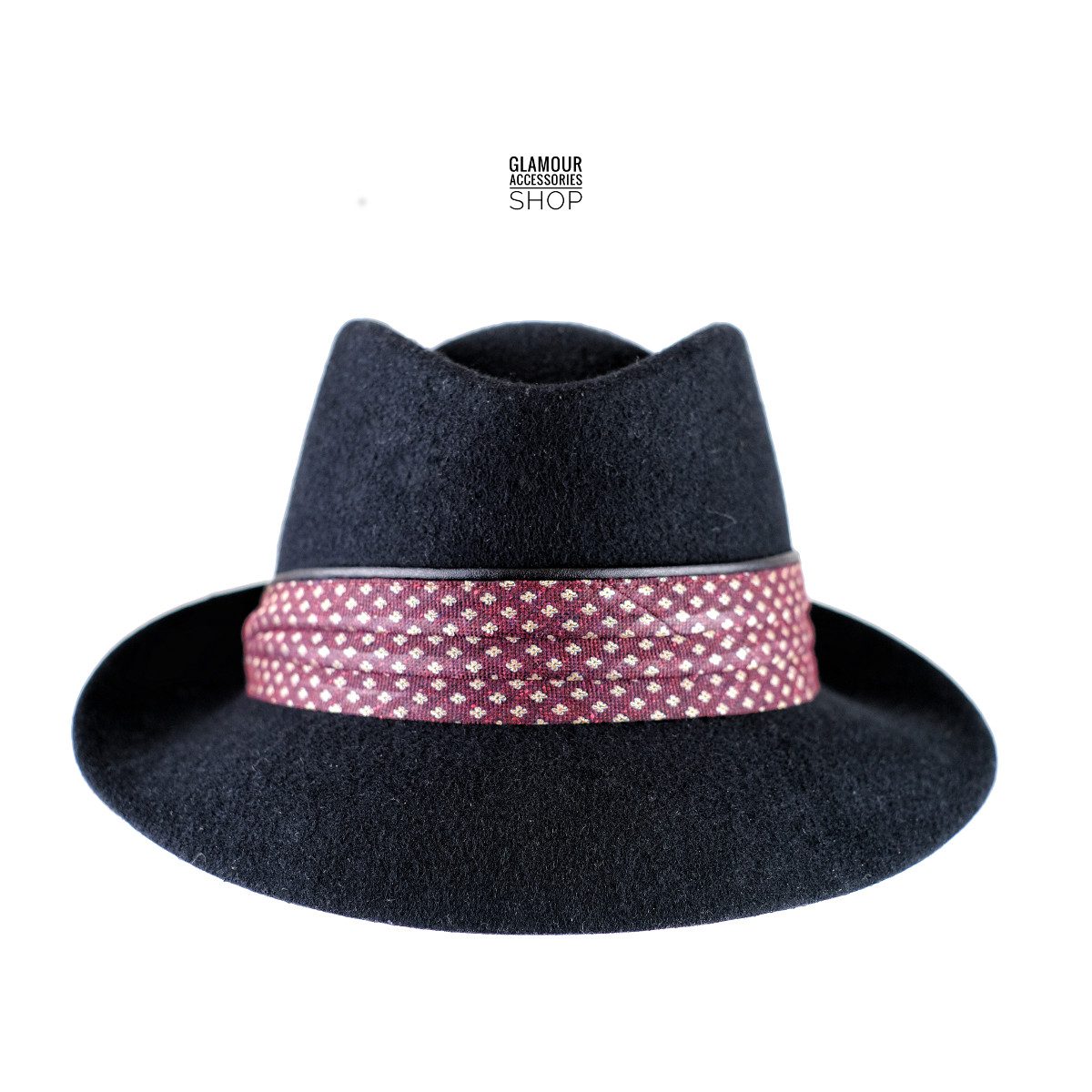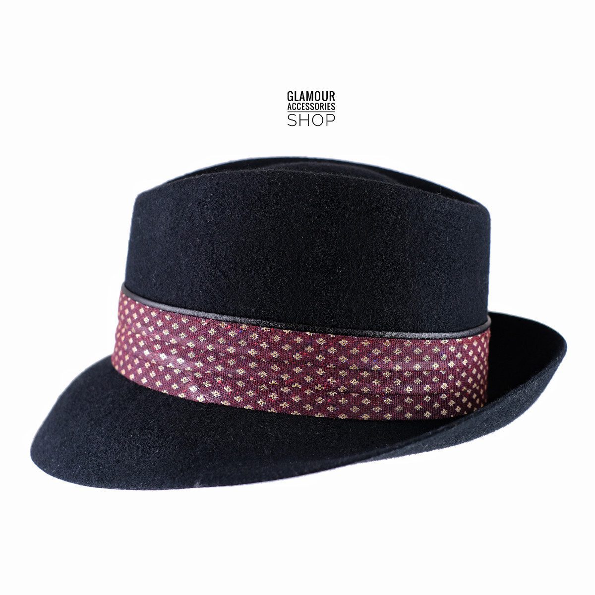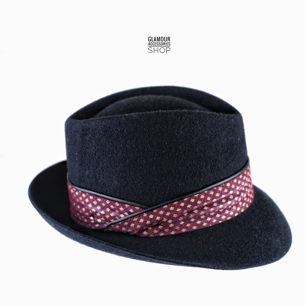 Capello trilby in lana made in Italy. Il trilby ha un carattere glamour, e la particolarità della falda corta lo rende semplice all’uso quotidiano, moto bella la fada davanti che scende leggermente in avanti.
