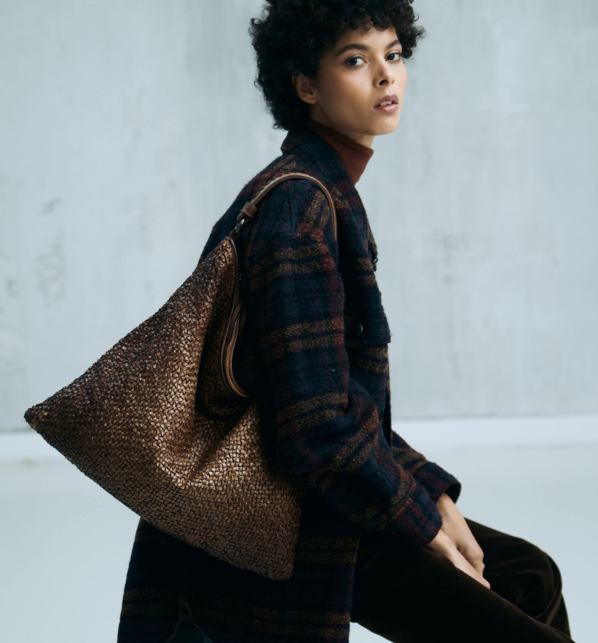 Anfora – Borsa a spalla con patta intrecciata