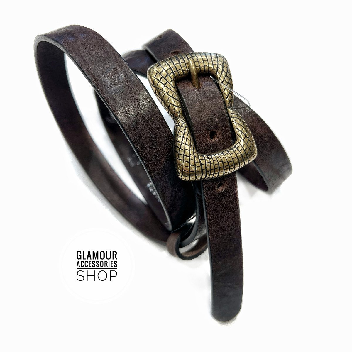 Cintura donna vera pelle vintage fibia rettangolare made in Italy Siria piccola