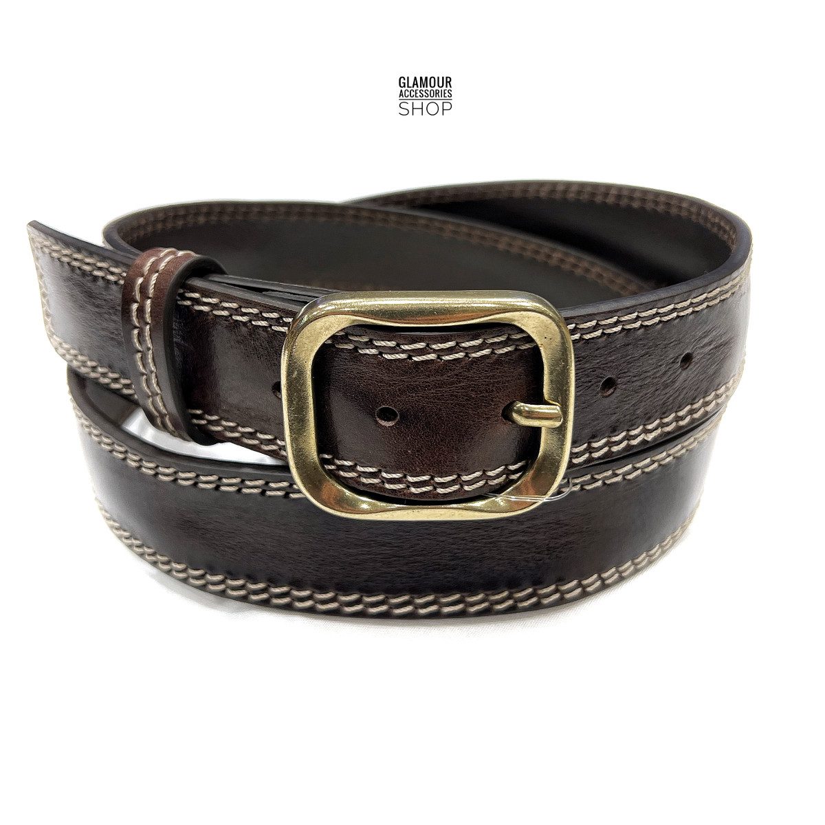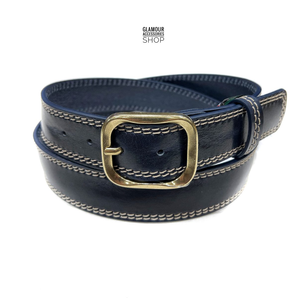 Cintura uomo donna vera pelle doppia cucitura fibia quadrata retrò Bologna MADE IN ITALY