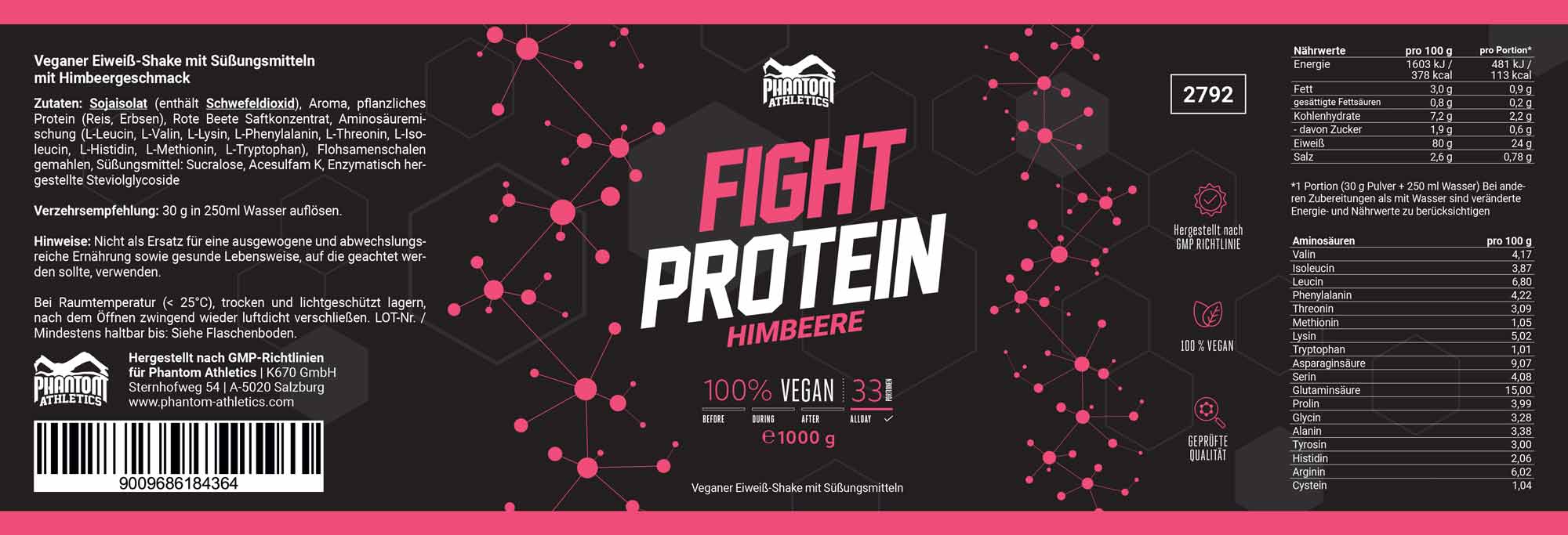 Eine gute Proteinversorgung ist essentiell bei intensivem sportlichen Training. Nur wenn der Muskulatur die notwendigen Bausteine zur Verfügung stehen, kann sie optimal regenerieren und ihre volle Leistung abrufen. Unser veganes FIGHT Protein Pulver wurde in Zusammenarbeit mit Kampfsportlern entwickelt und kommt in der Geschmacksrichtung “Schokolade”.