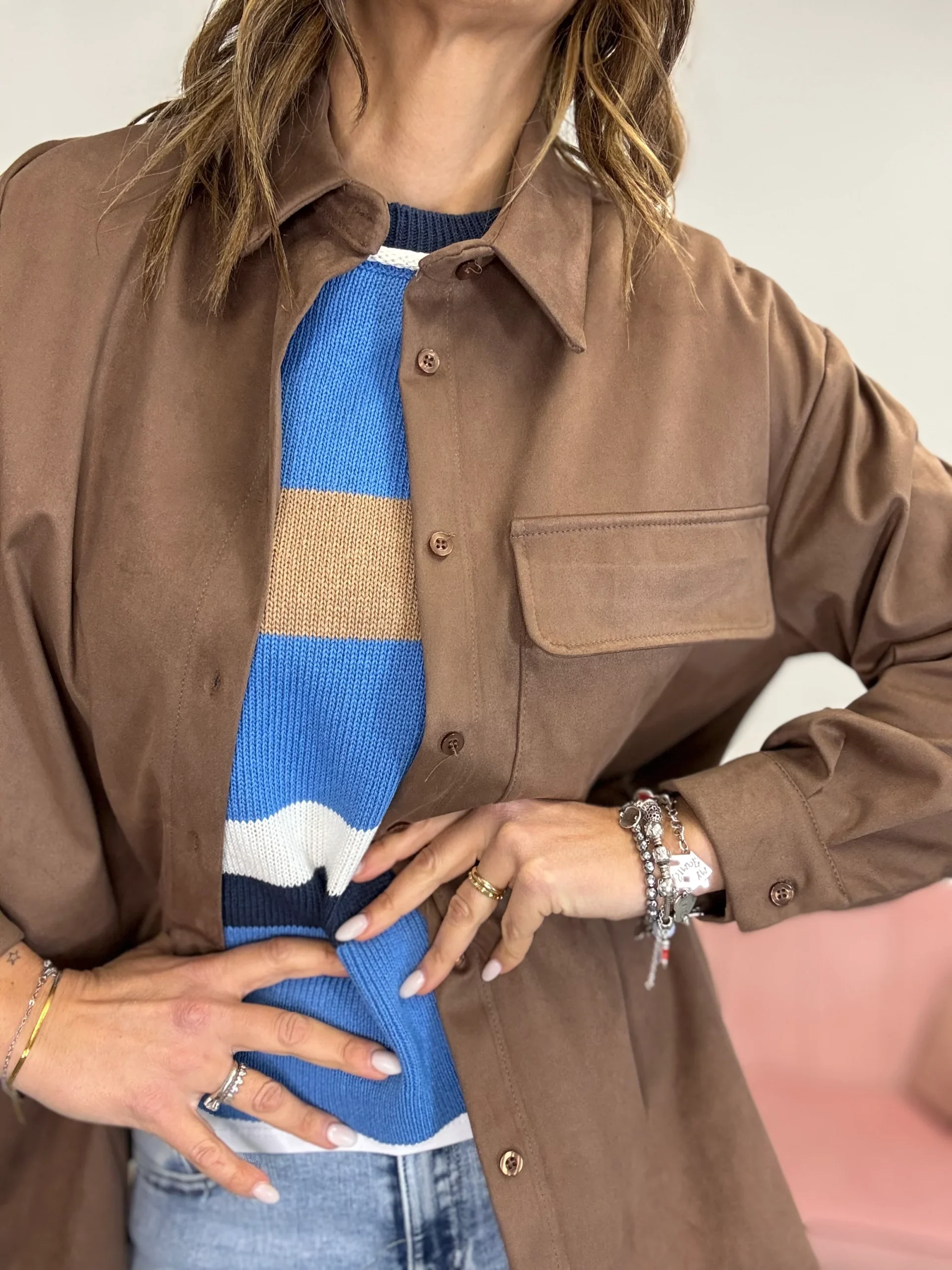 A bottoni che la percorrono, è lunga come fosse una giacca, la usi in tutte e due le maniere. Taglia unica da portare aperta ma anche chiusa, ideale da indossare su un paio di jeans chiaro, in abbinata ad una T-shirt o un Pool a richiamo colore. Veste Fino a taglia 46.