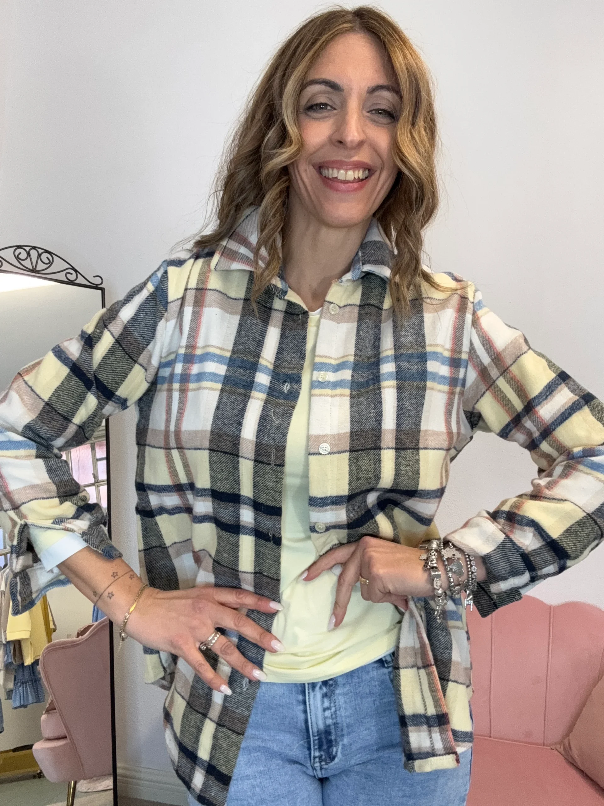 Camicia flanella leggera, ideale allo stacco con l’ingresso della primavera, perfetta nelle giornate di fresco ma già col sole, da indossare con un paio di jeans. È una camicia colorata e facile, veste fino a taglia 44,46.