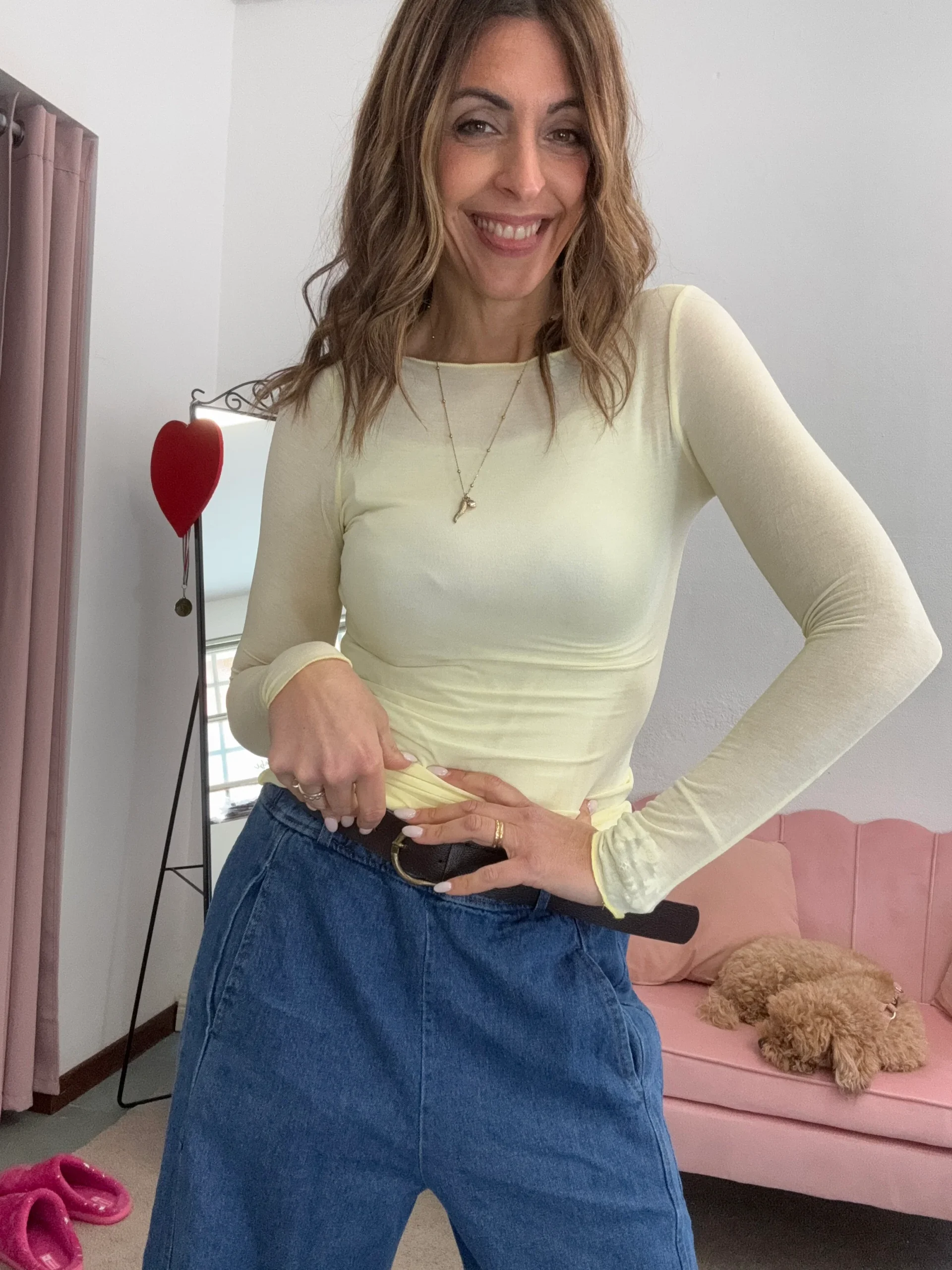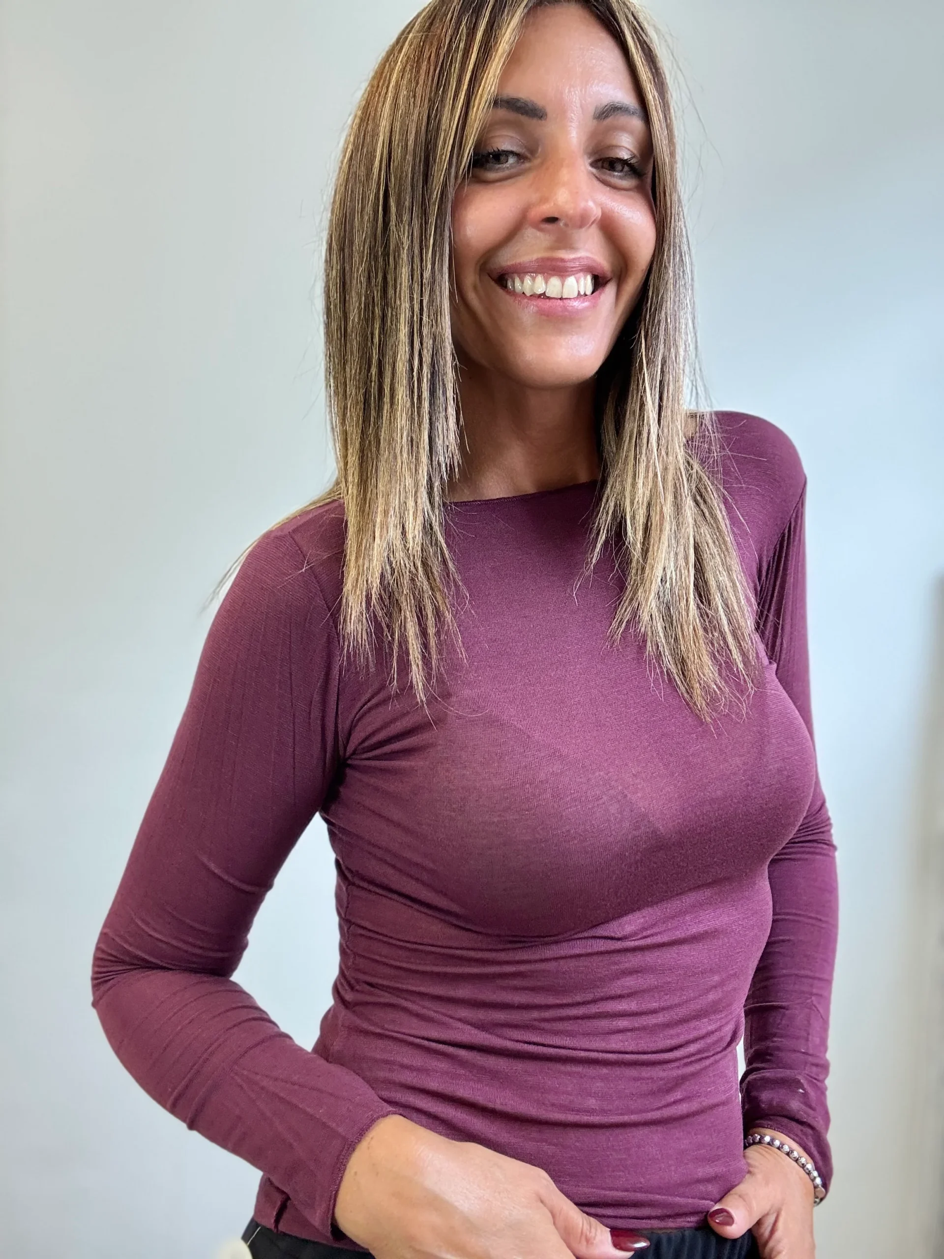 Maglia leggera in cachemire , adatta da sola o da utilizzare sotto ad un pull , un blazer .