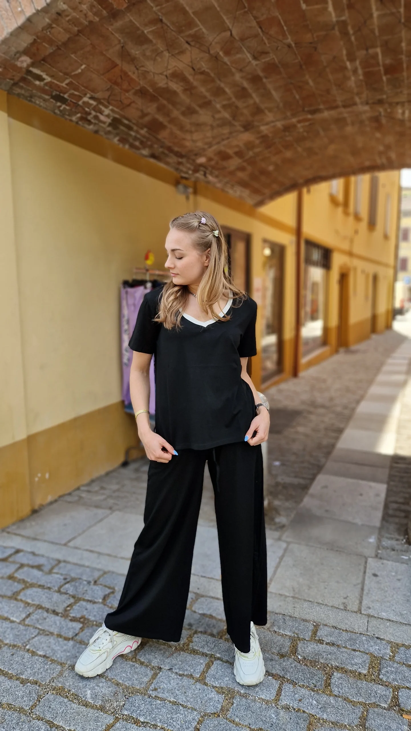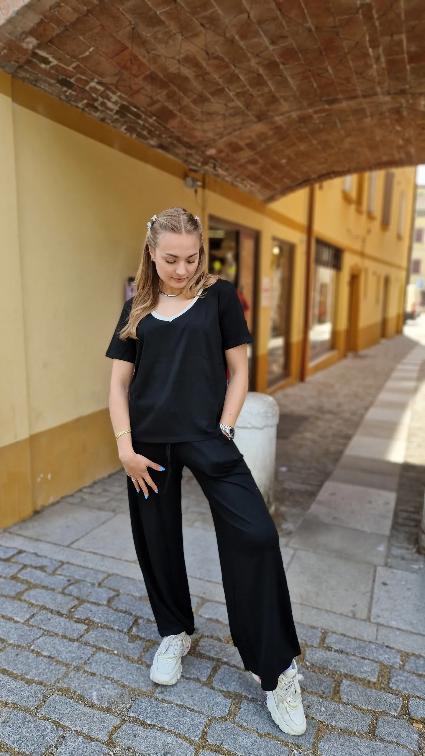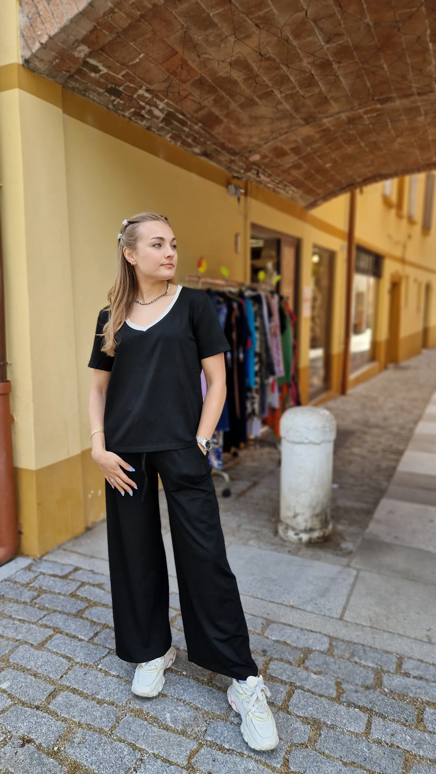 Maglia a maniche corte estiva nera con scollo a V in lurex Argenta, vestibilitร comoda dritta