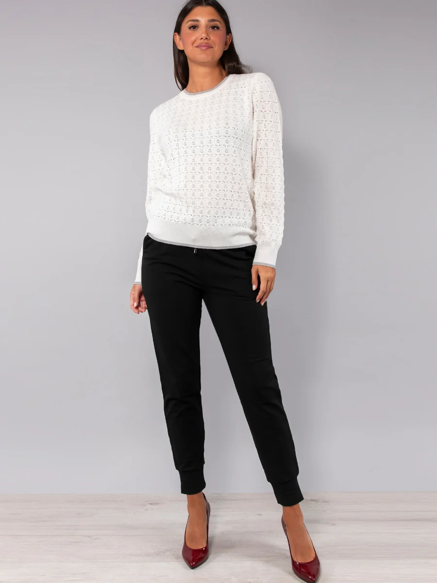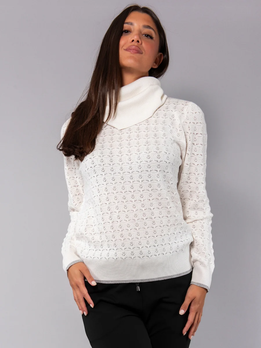 Facile da abbinare a pantaloni o gonne, questa maglia unisce comfort e stile con naturale eleganza.