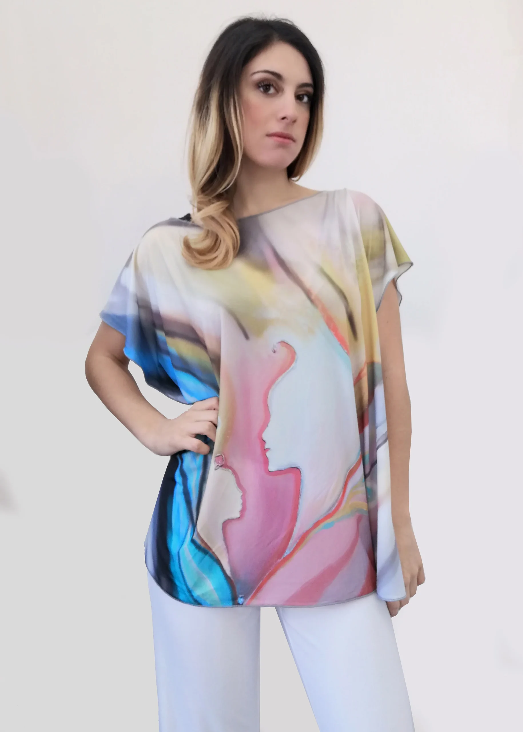 Maxi maglia in jersey rosa dal dipinto “Maternità”, morbida e confortevole. Mettibile come copricostume o maglia over con dei pantaloni a palazzo. Le maxi maglie estive danno un tocco di classe e sono comode e sempre di tendenza. Non si stirano e sono perfette per chi viaggia. Taglia unica.