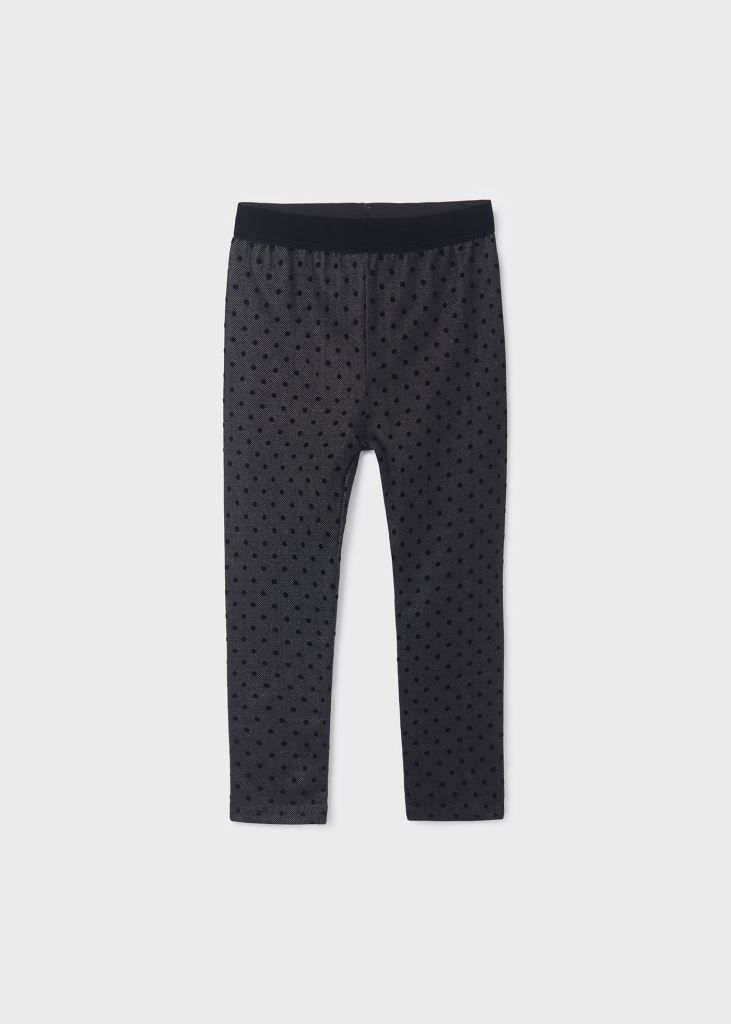 pantalone per bambina modello leggings. Elastico in vita per una migliore vestibilità. Stampa a pois.