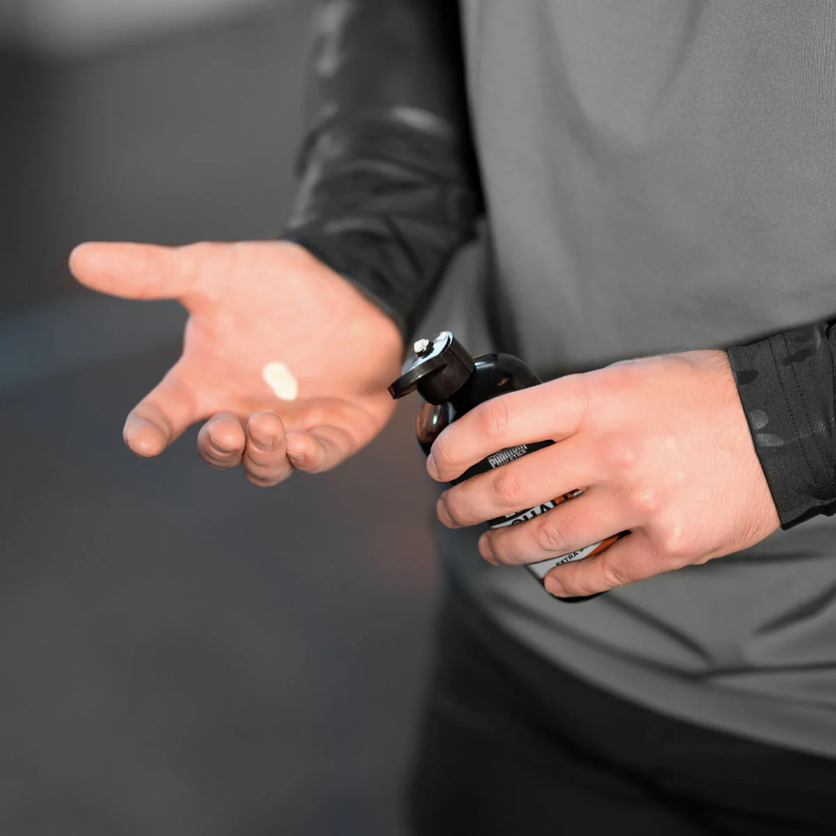 Eine kleine Menge Phantom Liquid Chalk in der Hand verrieben und kurz getrocknet, sorgt für hervorragenden Grip, um die härtesten Workouts, Lifts und Übungen durchzustehen.