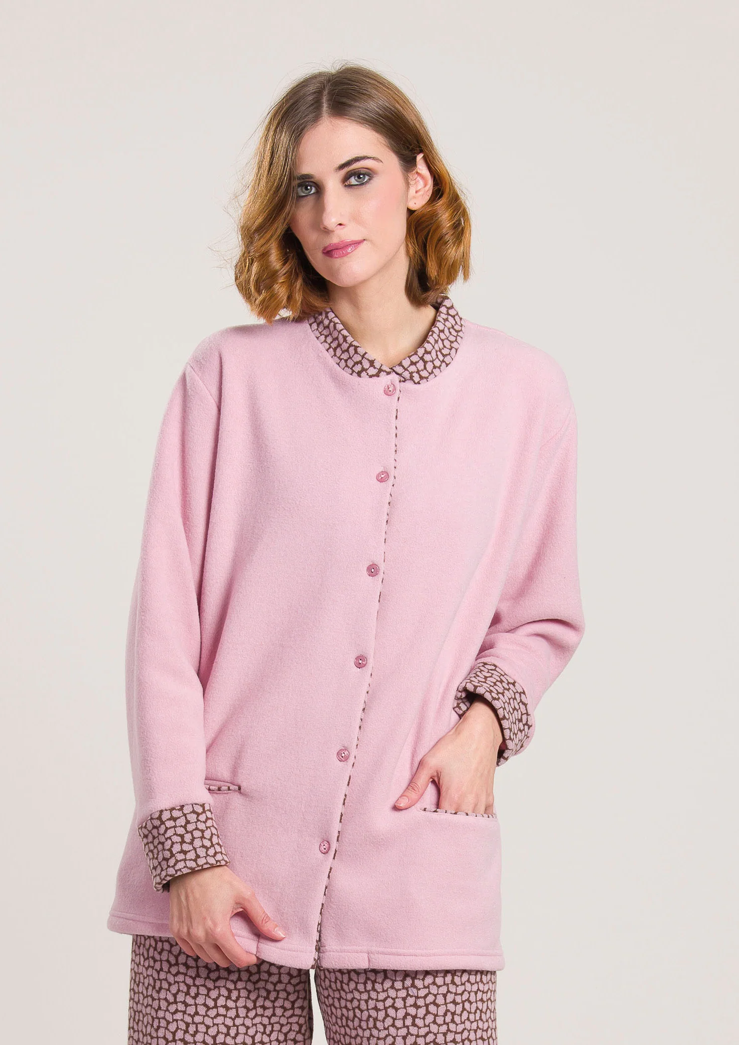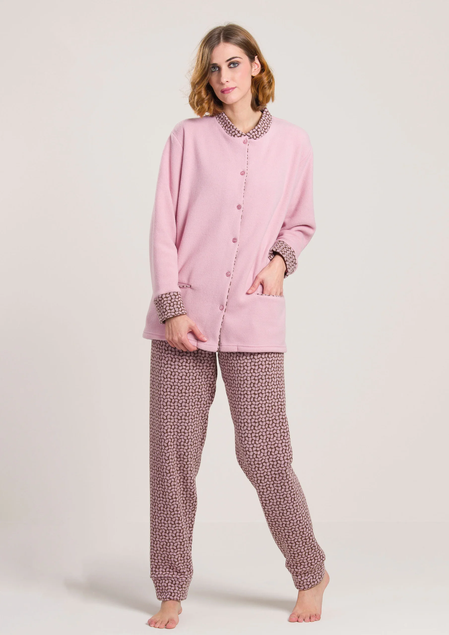 Pigiama aperto in caldo cotone a coste – ROSA ANTICO – FE13
