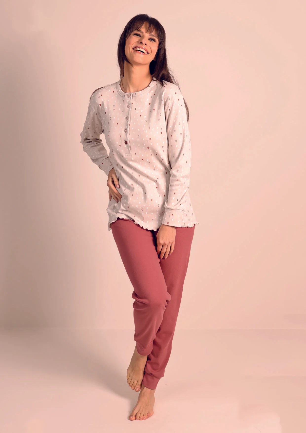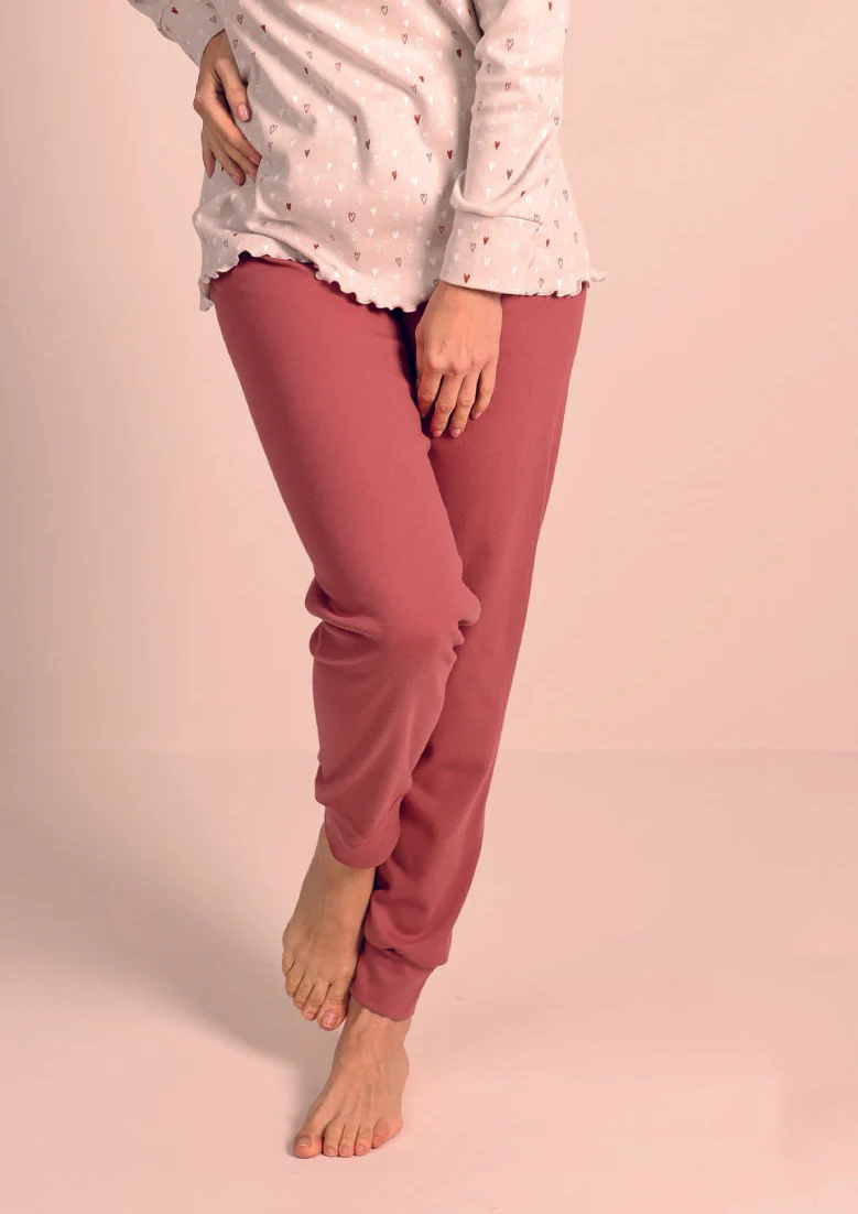 Pigiama aperto in caldo cotone a coste – ROSA ANTICO – FE13