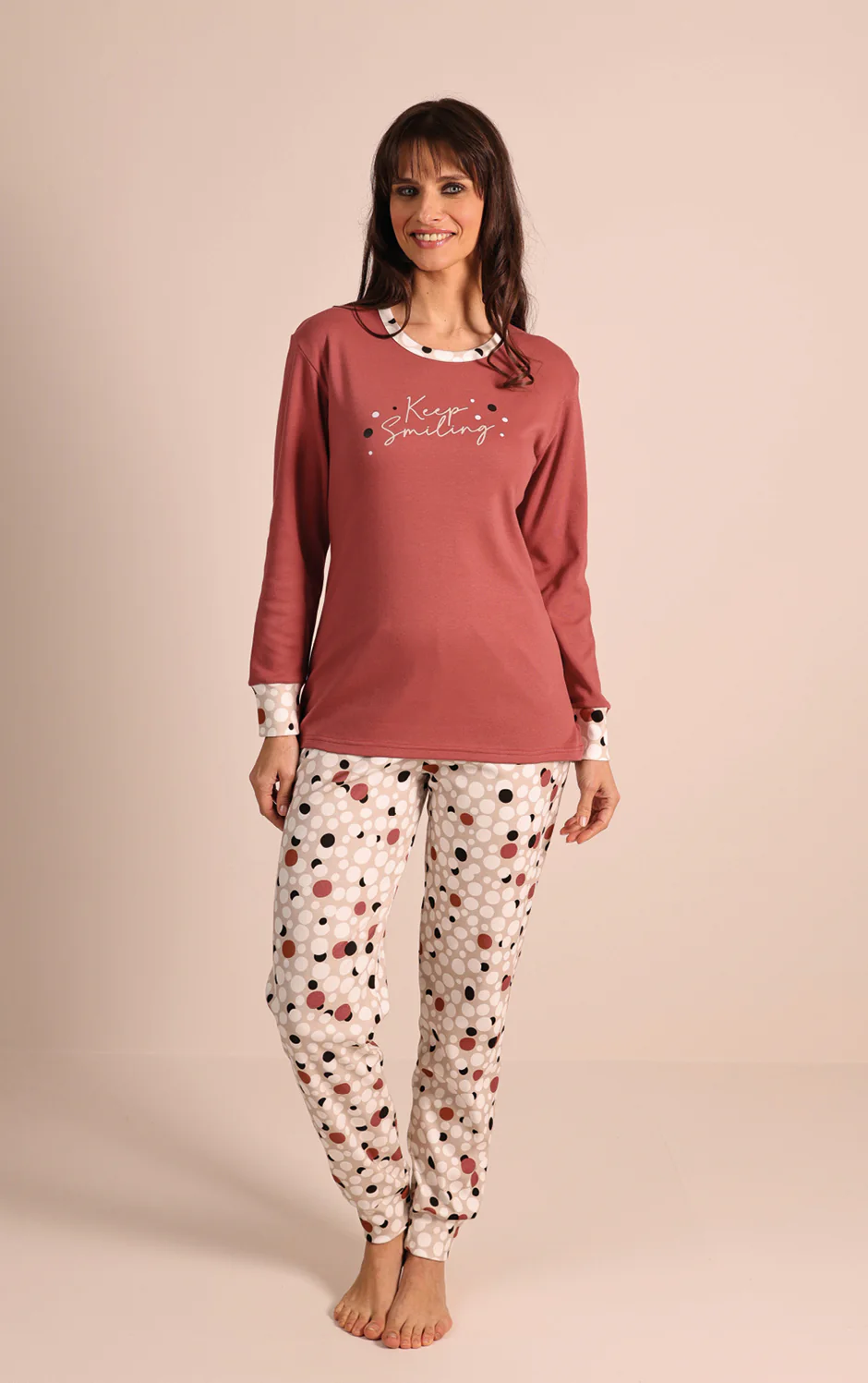 Grazie al tessuto caldo e morbido, questo pigiama assicura comfort e libertà di movimento, rendendolo ideale sia per rilassarsi in casa che per dormire serenamente. Un capo pratico, elegante e facile da indossare ogni giorno.