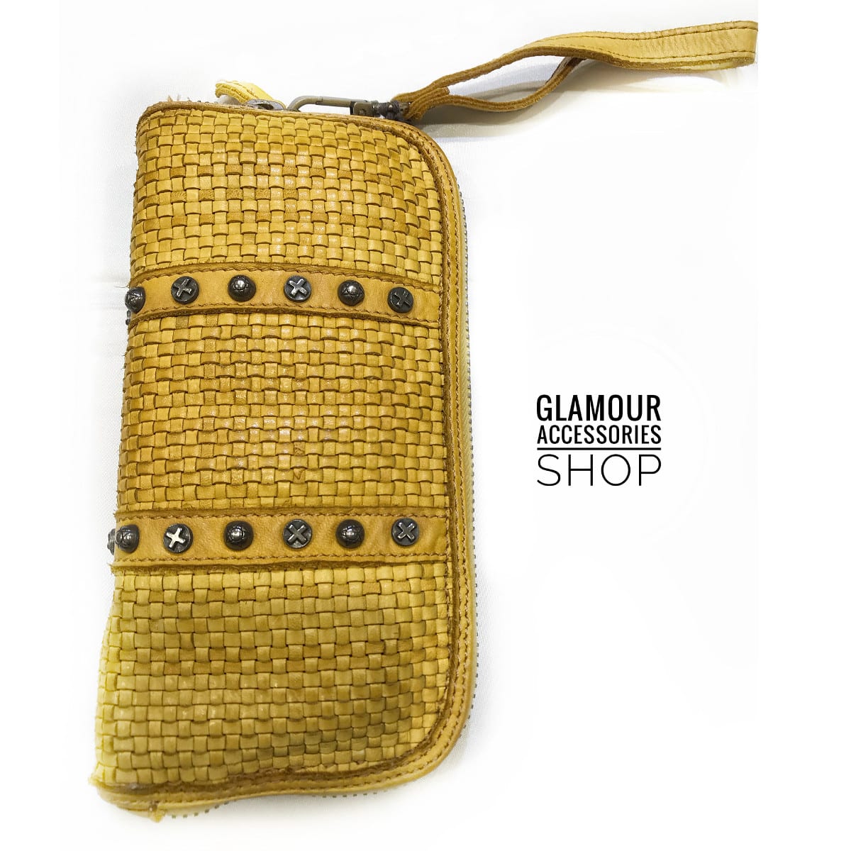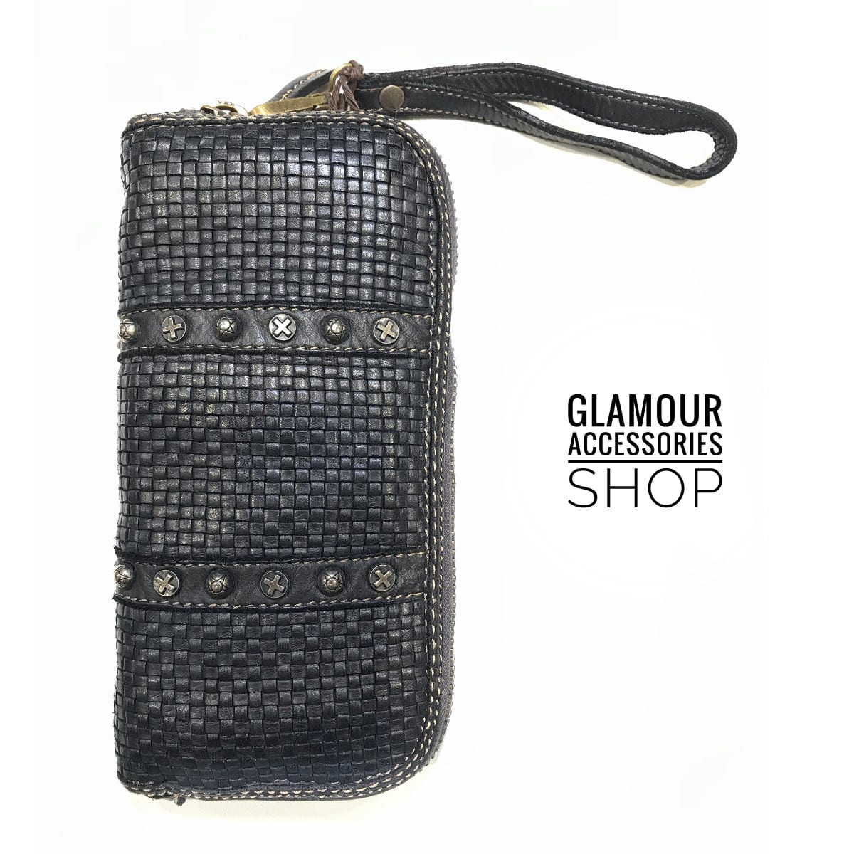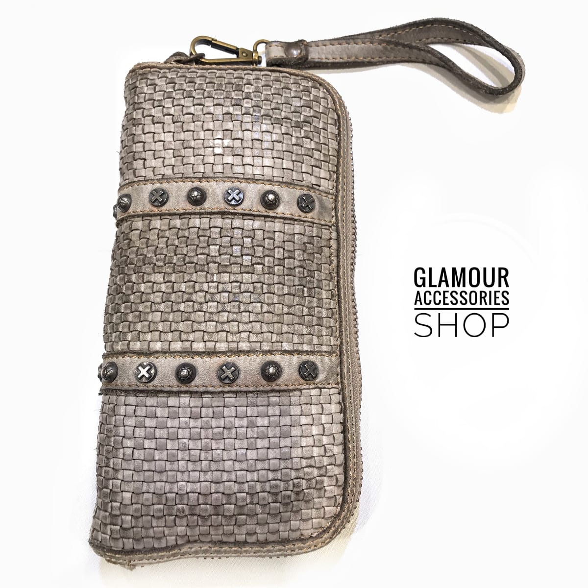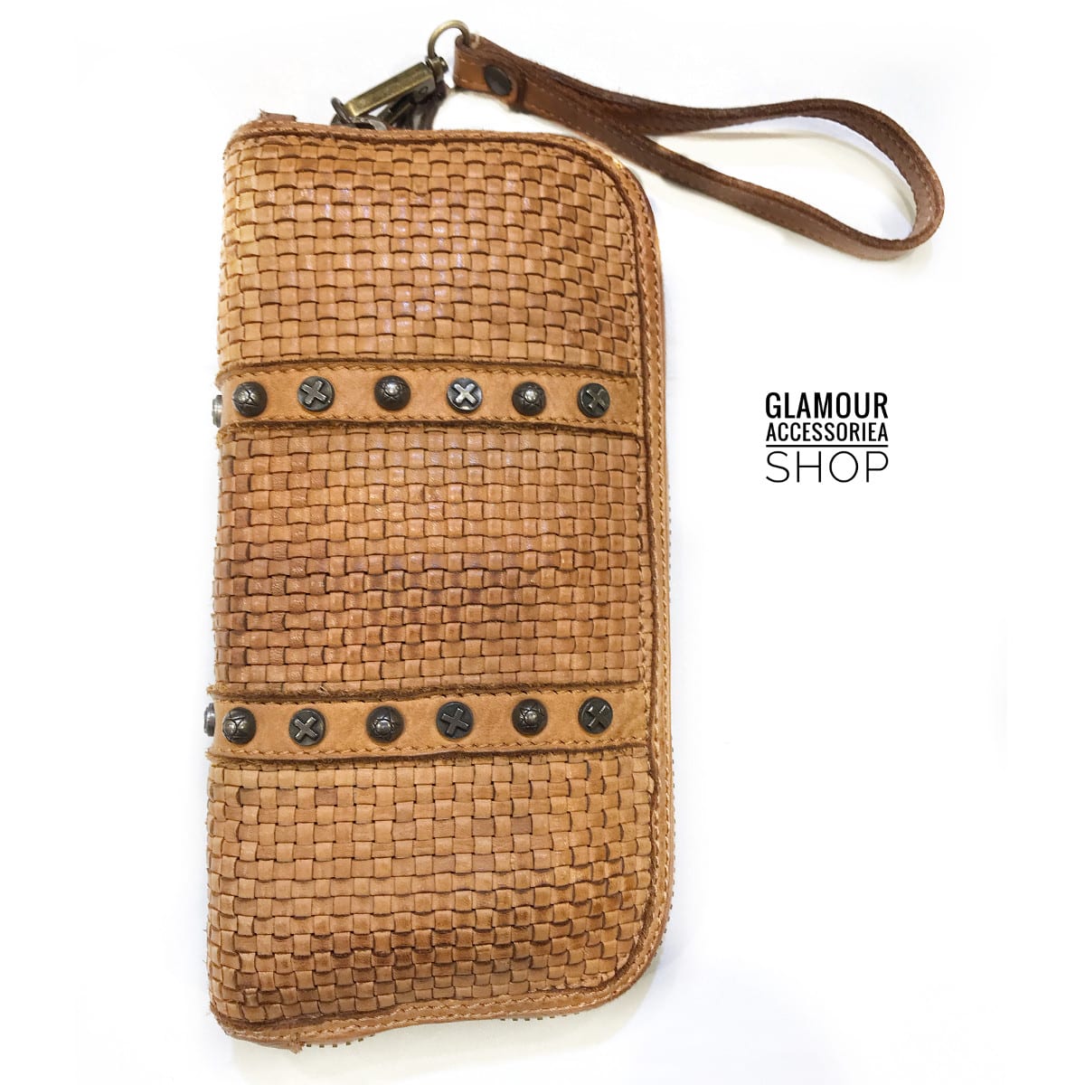 PORTAFOGLIO donna vera pelle intrecciata e borchiato MADE IN ITALY