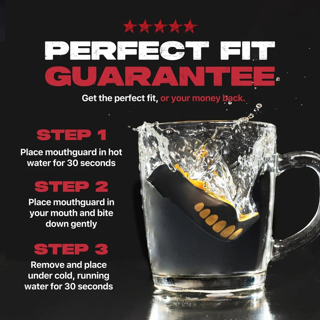Dank der innovativen Fluid Fit™ Technologie schmiegt sich der Zahnschutz perfekt an deine Zähne an – fast wie ein Clip. Das sorgt für sicheren Halt und höchsten Tragekomfort, ohne dich beim Atmen oder Sprechen einzuschränken.