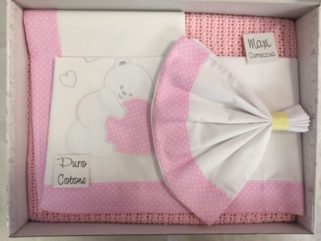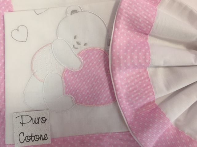 set lenzuola – BIANCO ROSA – coccole d’oro