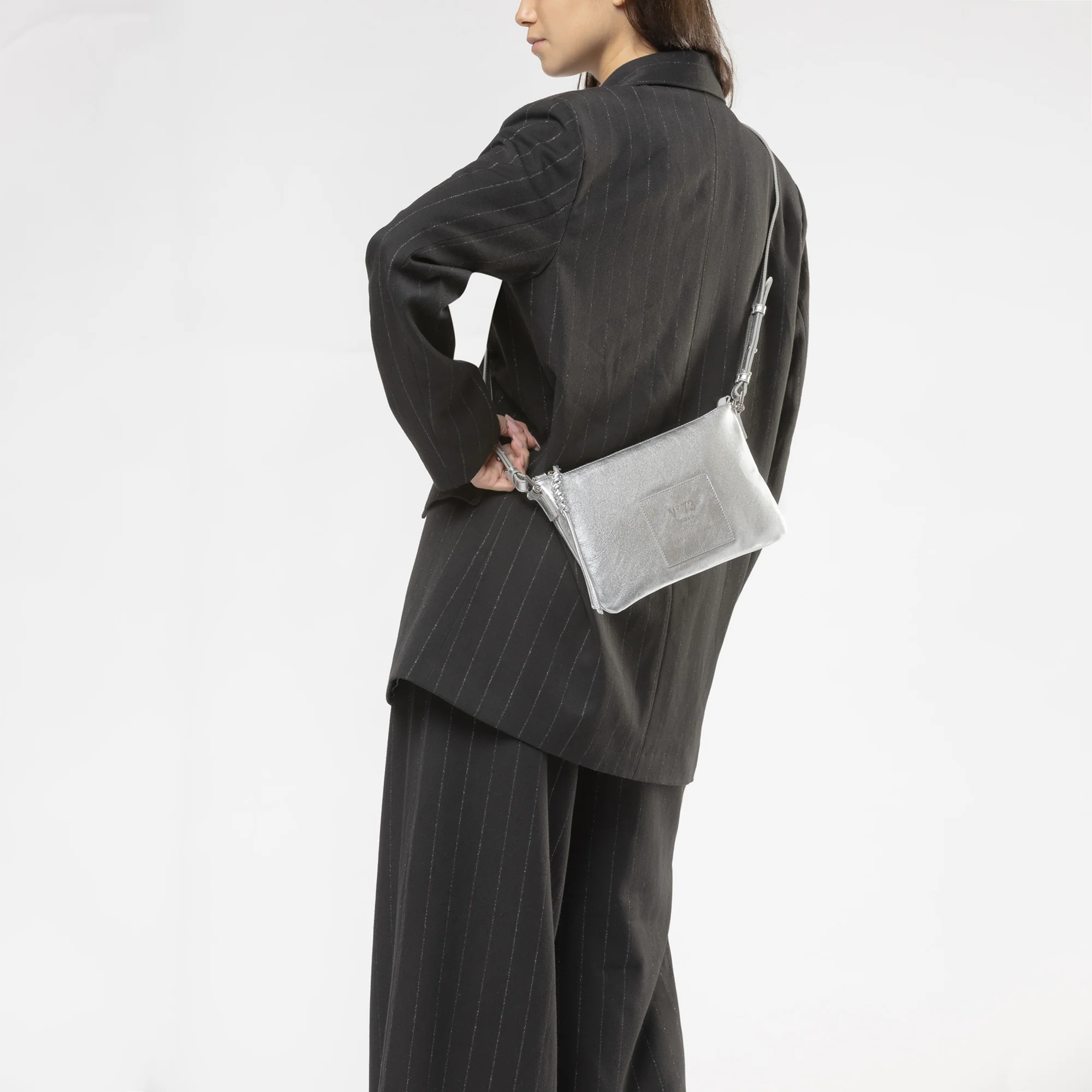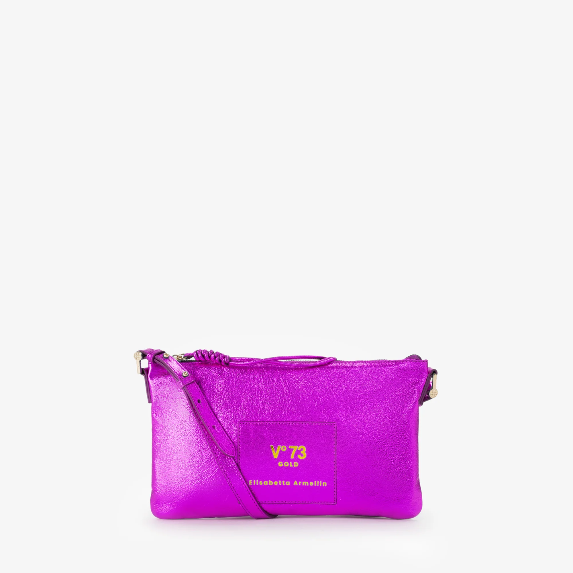 Tracolla collezione pelle realizzata in colori metallizzati ,unisce uno stile audace a dettagli ricercati. Il finish luminoso cattura la luce con ogni movimento, mentre il maxi patch logato aggiunge un tocco distintivo e contemporaneo.undefined