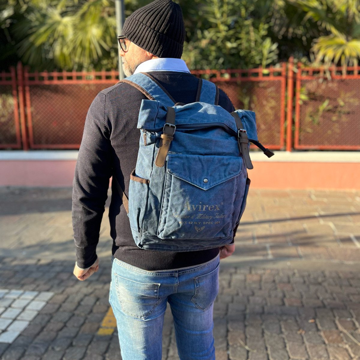 Zaino AVIREX uomo donna in canvas e pelle CNV0L-500 BACKPACK blu – verde