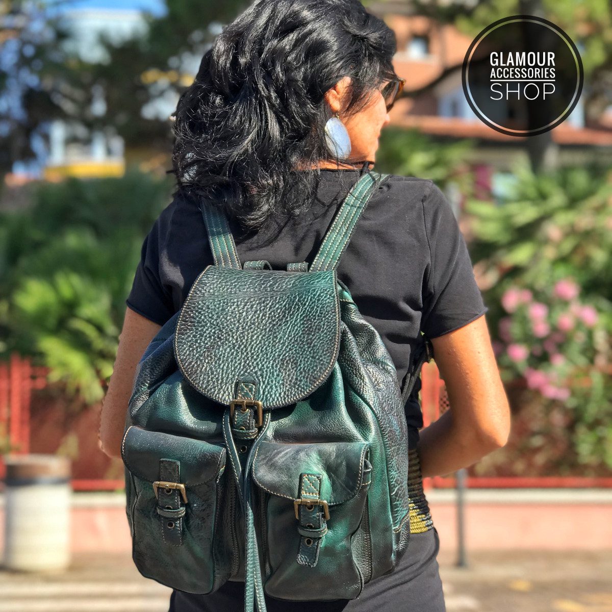 ZAINO uomo donna classico 3 tasche vera pelle vintage MADE IN ITALY artigianale